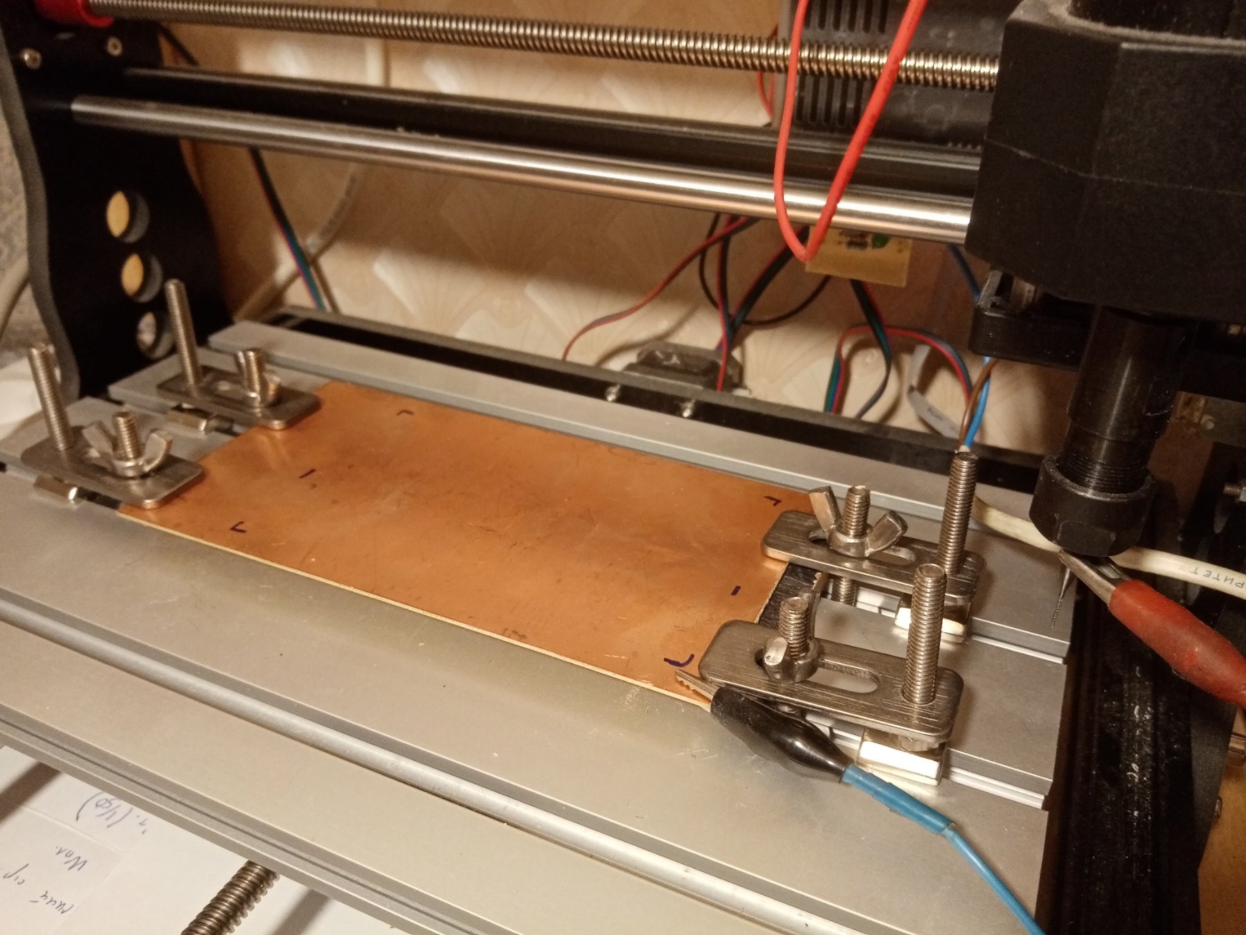 и мои прижимы дополнительно изгибают плату, а глубина фрезерования установлена всего 0,1 мм, то нужно провести сканирование поверхности платы.