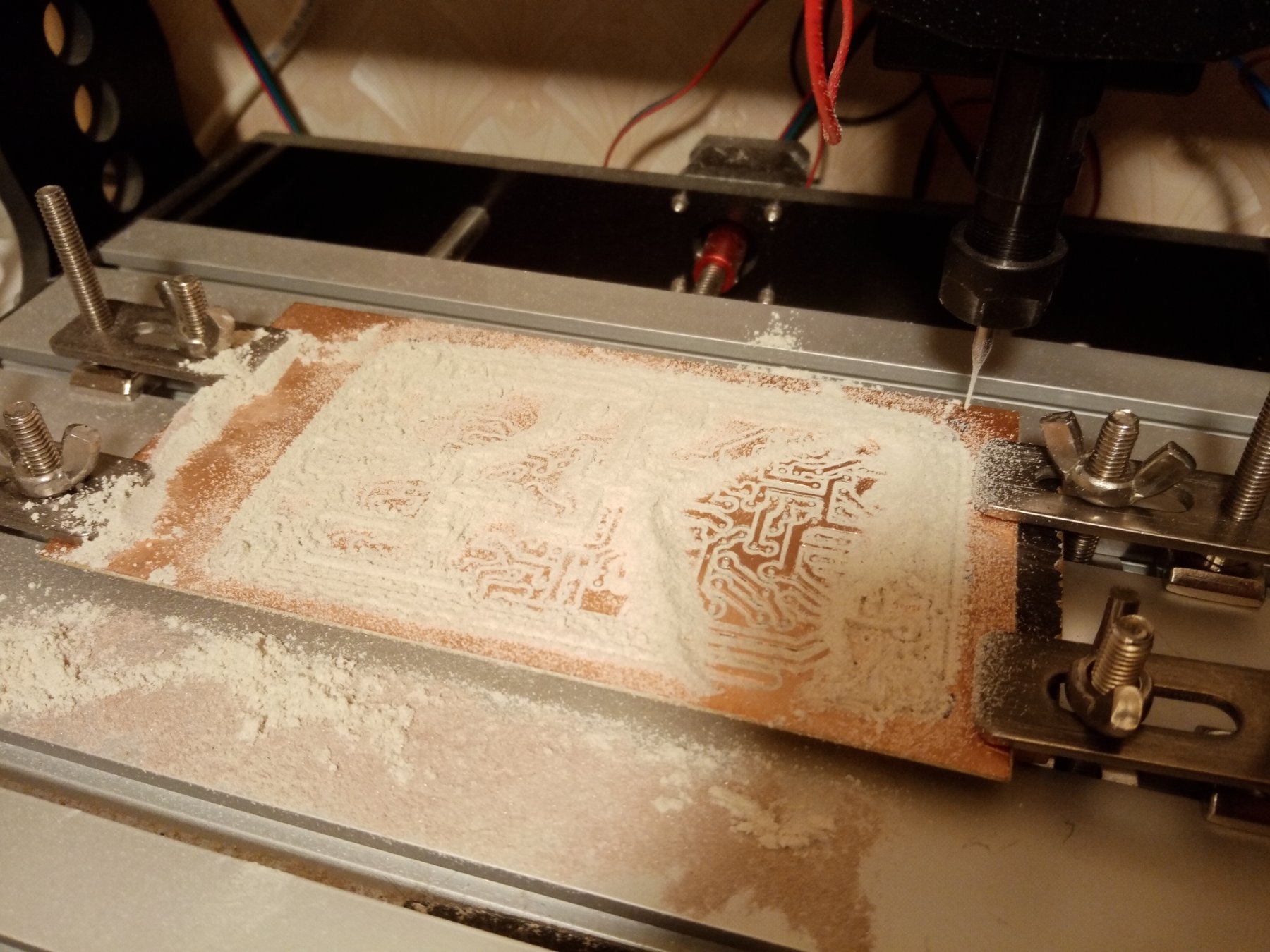 Основная моя ошибка - малая глубина фрезерования и кривая и маленькая подложка.