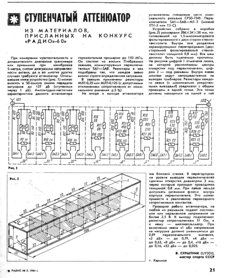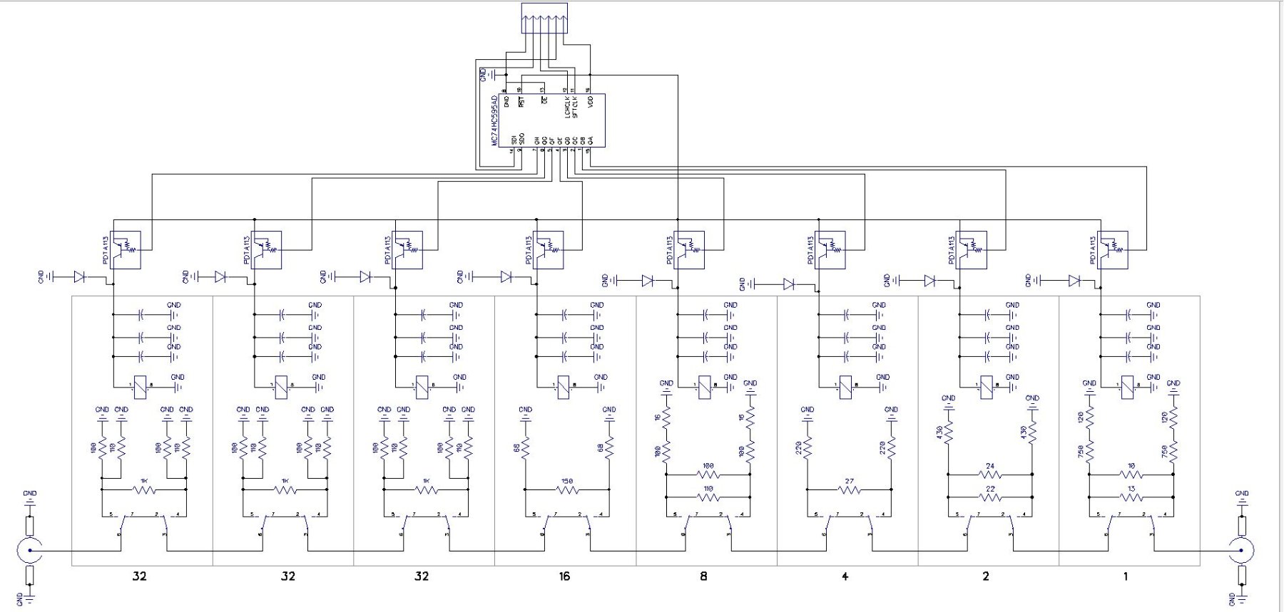 Вот и я задумал собрать себе подобную вещь, но на реле, что бы можно было удобно управлять при помощи МК и энкодера. Тем более, что значение ячеек АТТ (1,2,4,8,16,32,32,32) прямо таки напрашивалось для цифрового управления