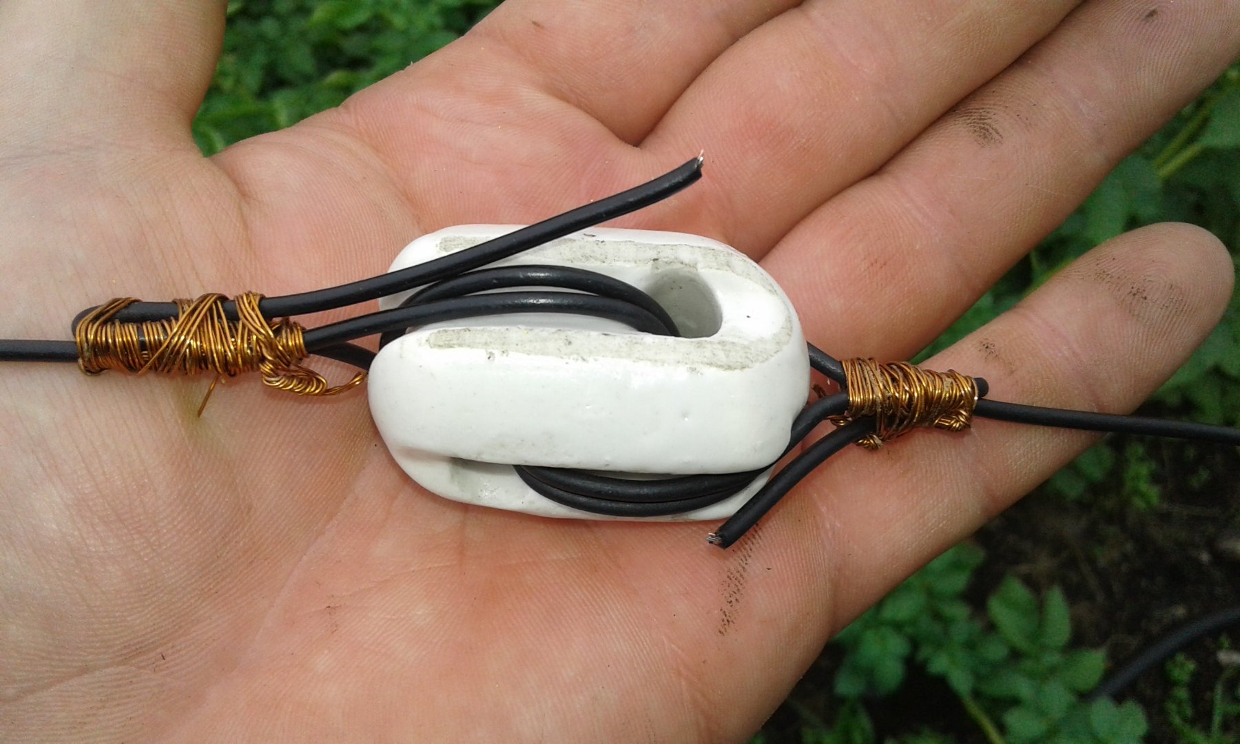 Главное, не приближайте конец антенного полотна к каким-либо предметам. Сделайте отсечку орешковым изолятором.