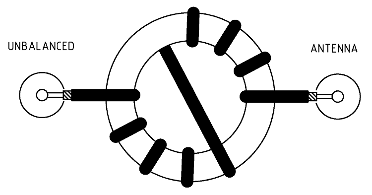 Я долго "мудохался" с балунами 1:1, всякое перепробовал, но в итоге остановился на коаксиальном кабеле на кольце.