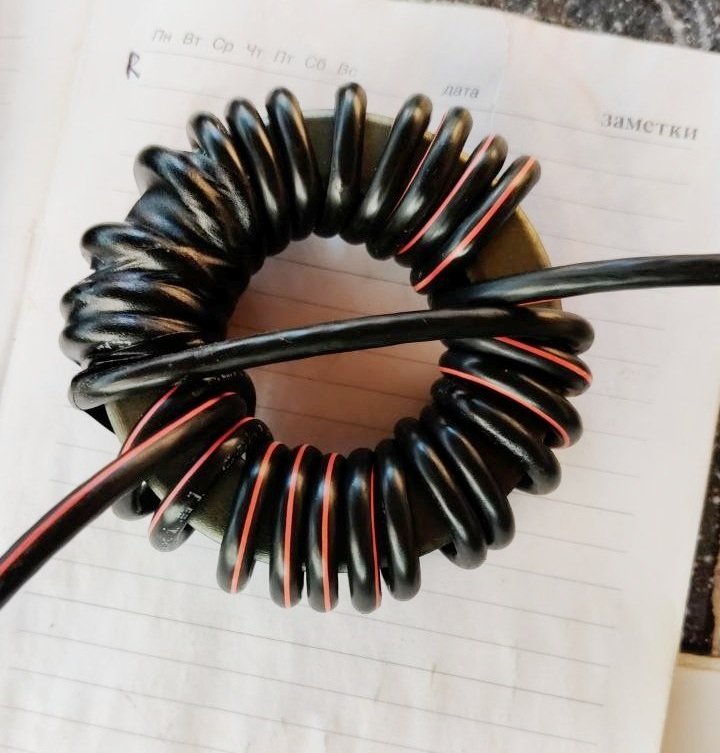 Значит, на этом кольце поместится 69/5,5 = 12 витков кабеля (6+6 витков).
