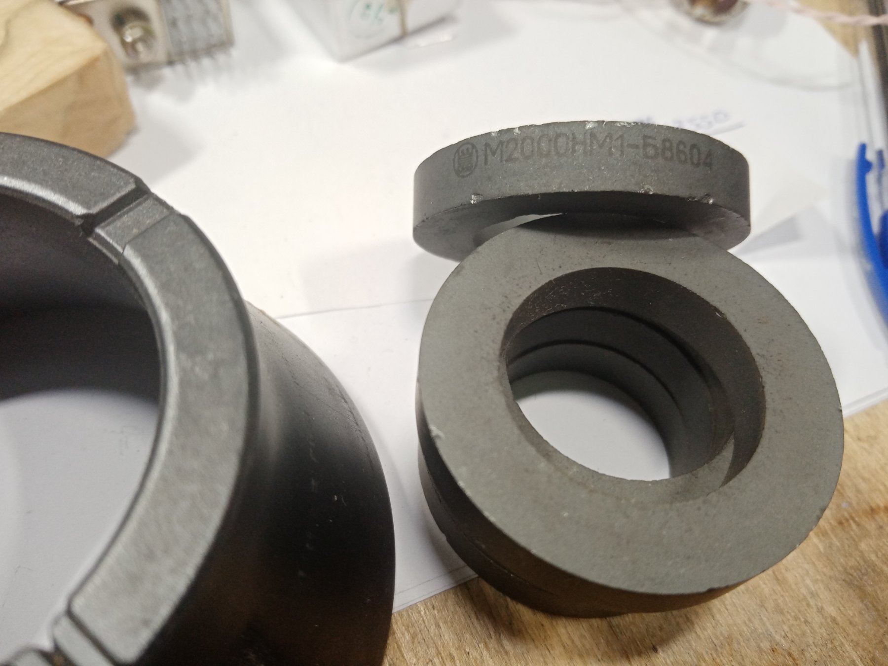 Итак, кольцо 44,5х27,5х8 М2000НМ-1 Намотал 12 витков с переходом, вот так По оплётке намерилось 275 мкГн .