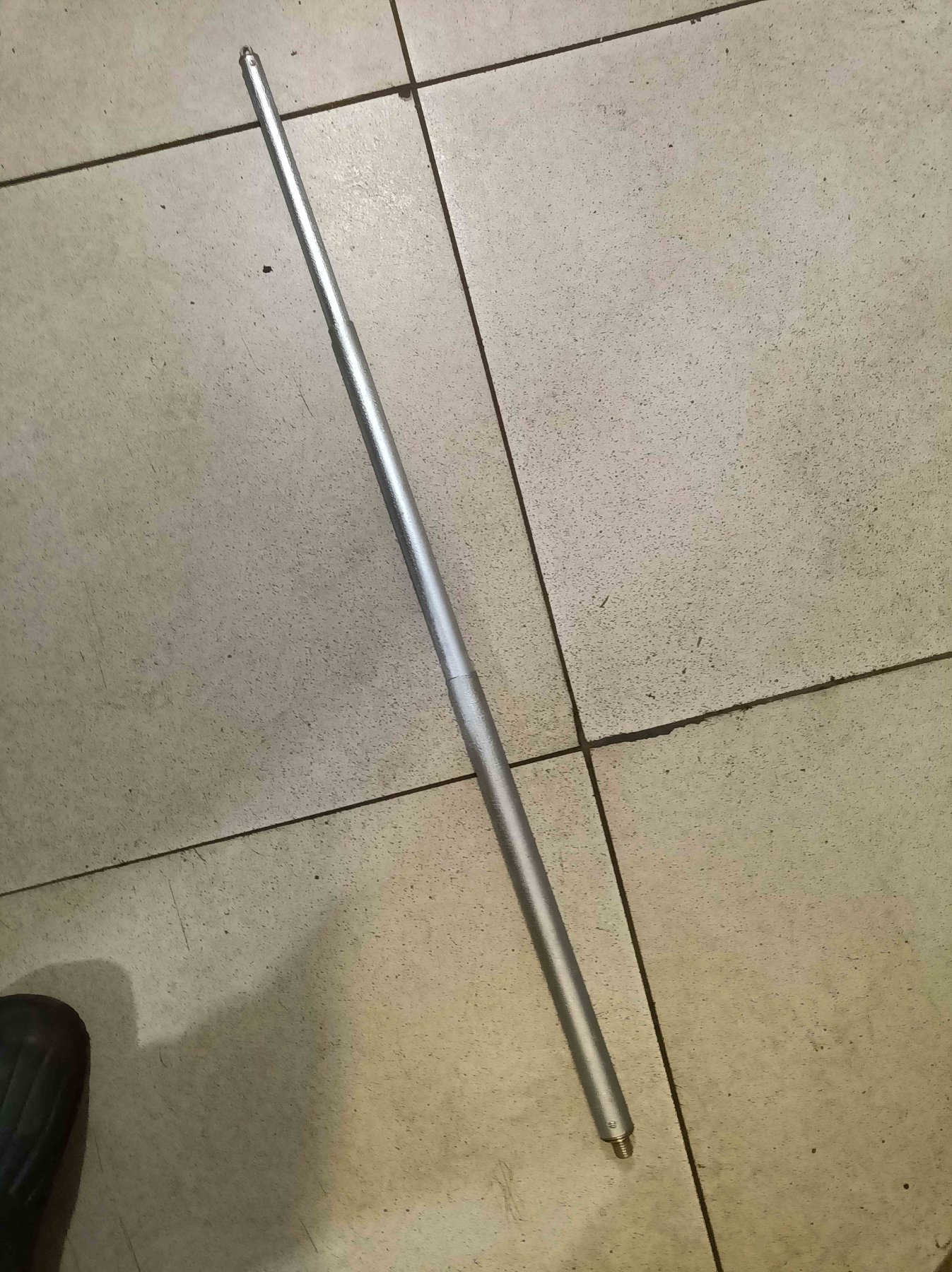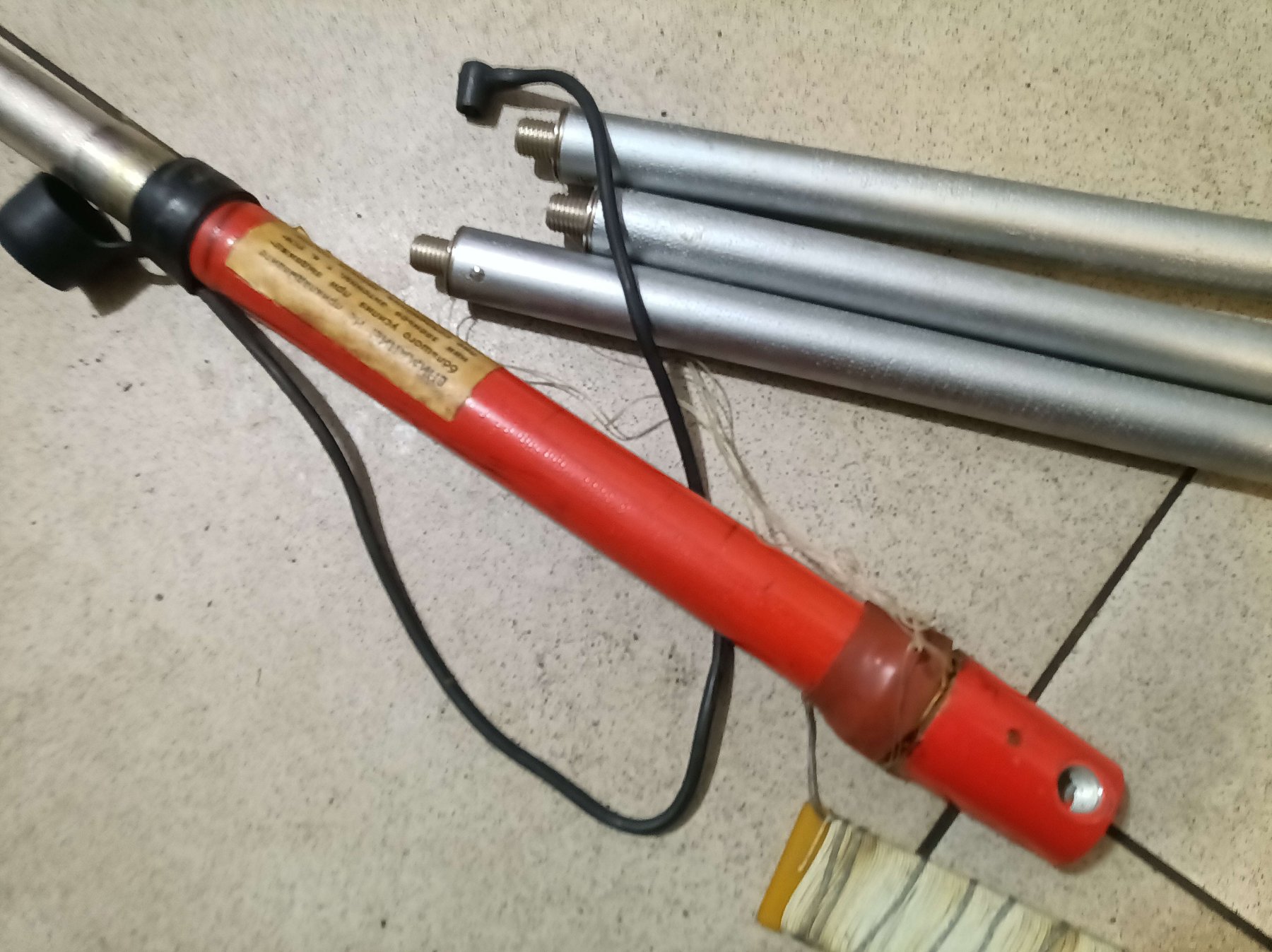 В раздвинутом состоянии (красный телескоп) она, помнится, чуть длиннее 5 метров (1/4 длины волны 20-ти метрового диапазона).