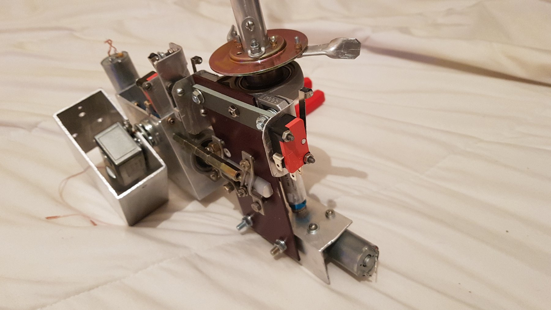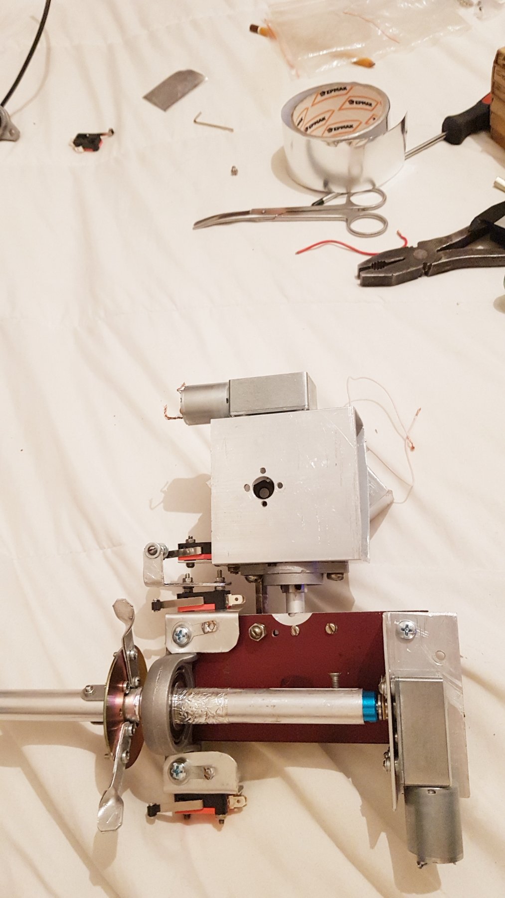 данное поворотное устройство может координировать малогабаритную УКВ антенну (до 2 кг) по азимуту, элевации и поляризации. У меня используется данная УКВ антенна на пластиковом буме: 3 эл. на 145 и 4 эл. на 435 для работы по спутникам. Управление двигателями редукторов осуществляется с помощью 2х драйверов l298 , индикация положений по концевикам- светодиоды.