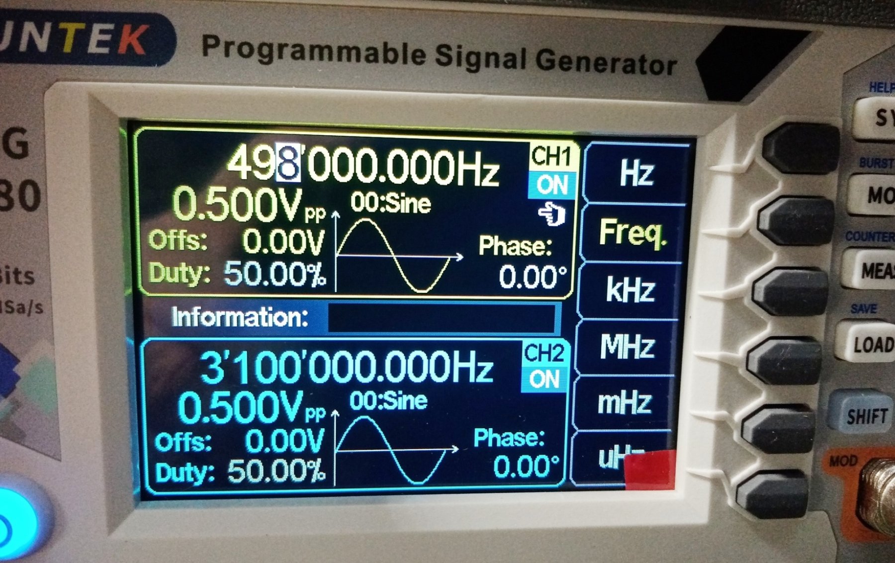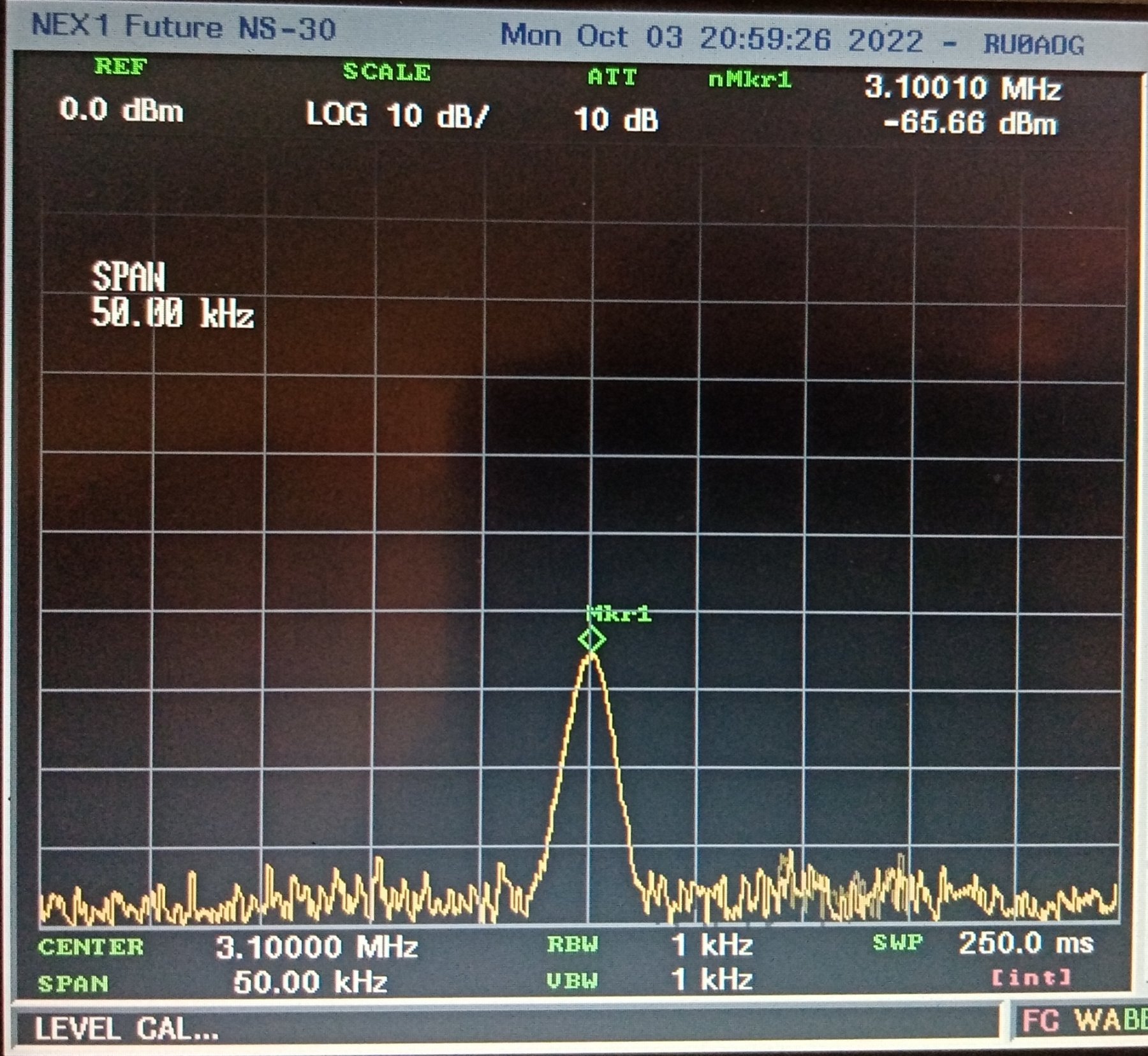 - проверил подачей однотонового сигнала (НЧ = 1 кГц). После ЭМФ сформировался DSB-сигнал с чётким пересечением нуля