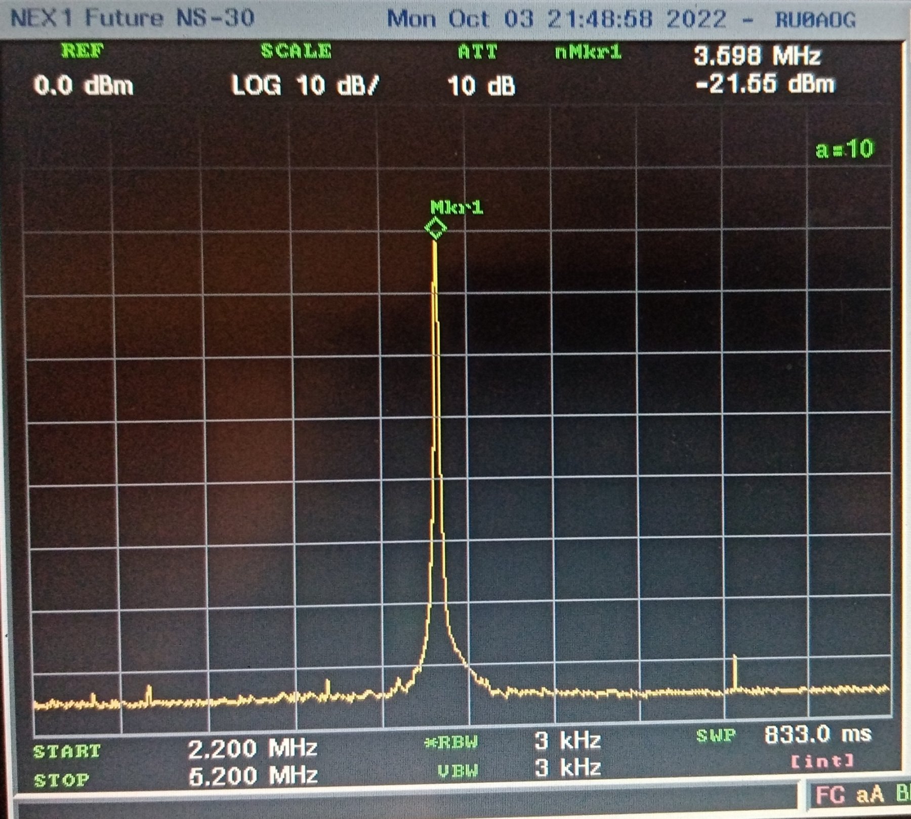 - разворачиваем несущую на весь экран и балансировкой второго смесителя ищем минимум