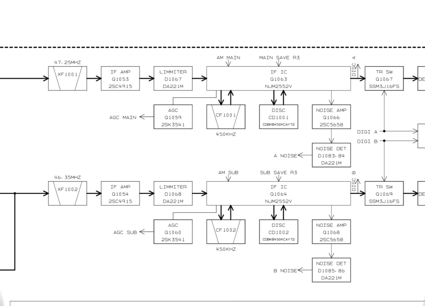 Если смотреть блок схему то ВЧ-фильтры для обоих приемников используются одни и те же.