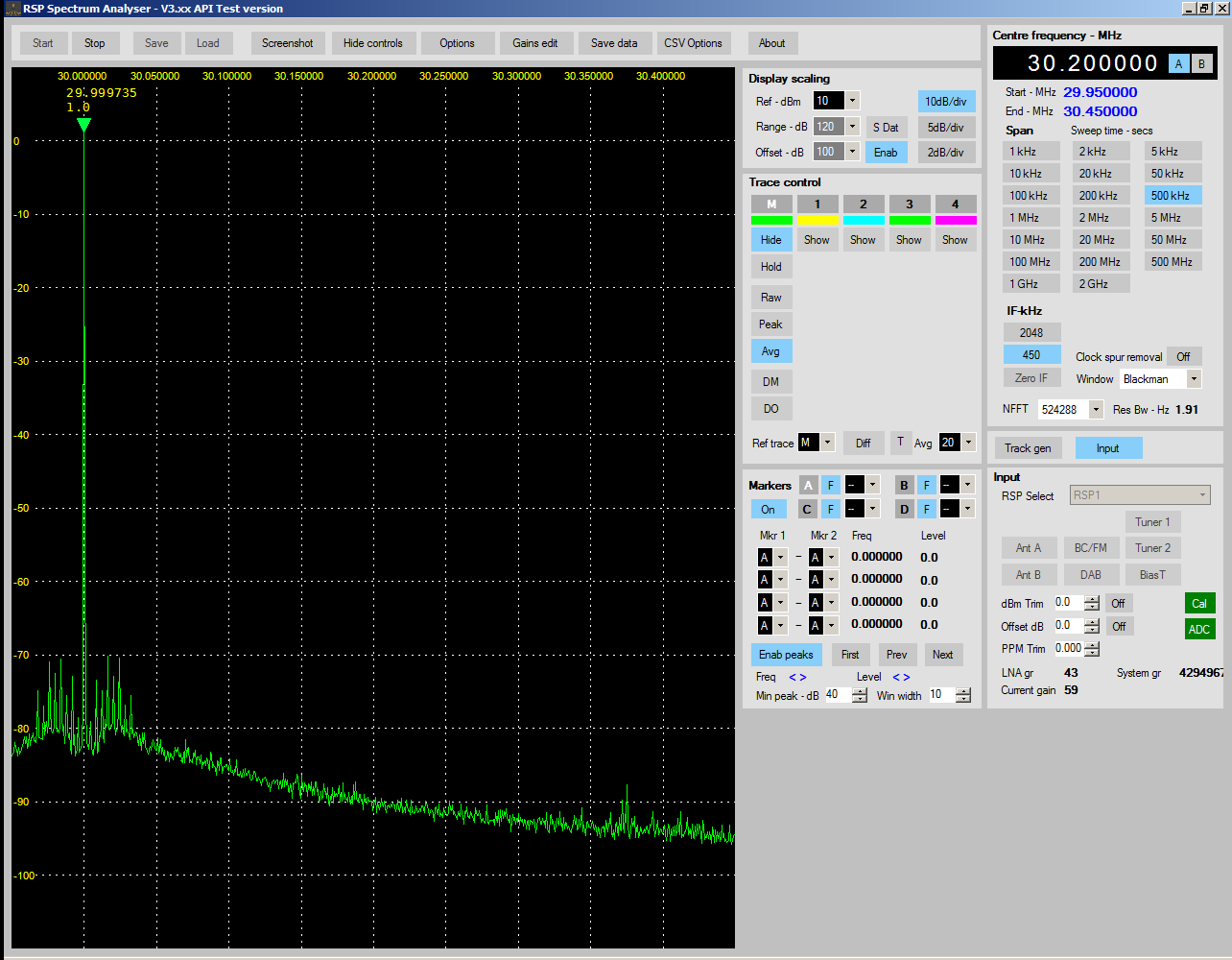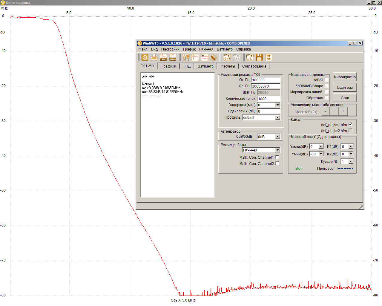 Ширина фильтра всего 70 Гц (-6 дБ), а полоса сканирования 300 Гц, поэтому как мне кажется, затухание отображается не вполне корректно.