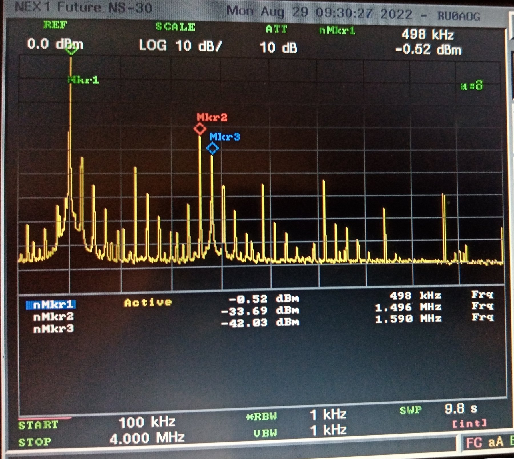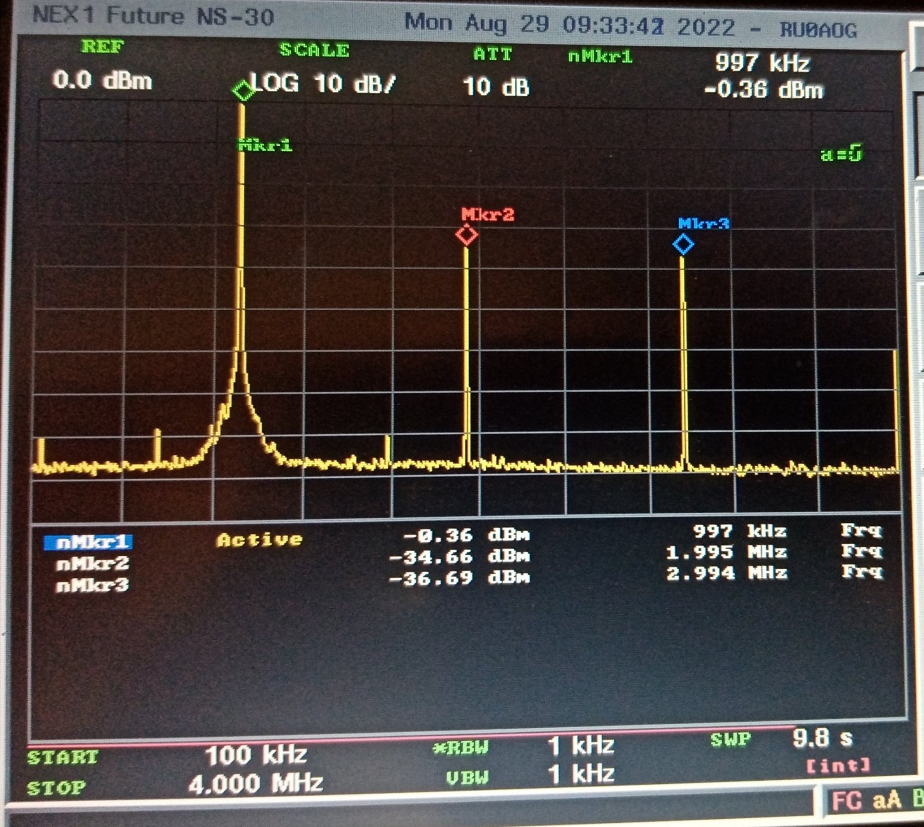 -33 dBm гармонических и -42 dBm негармонических 1 МГц