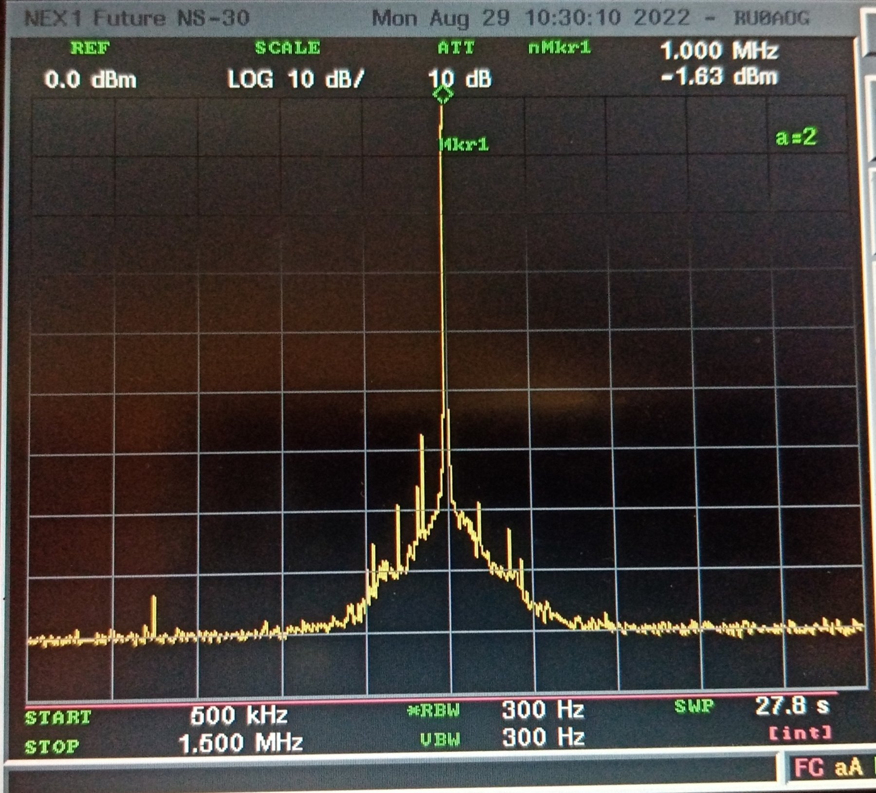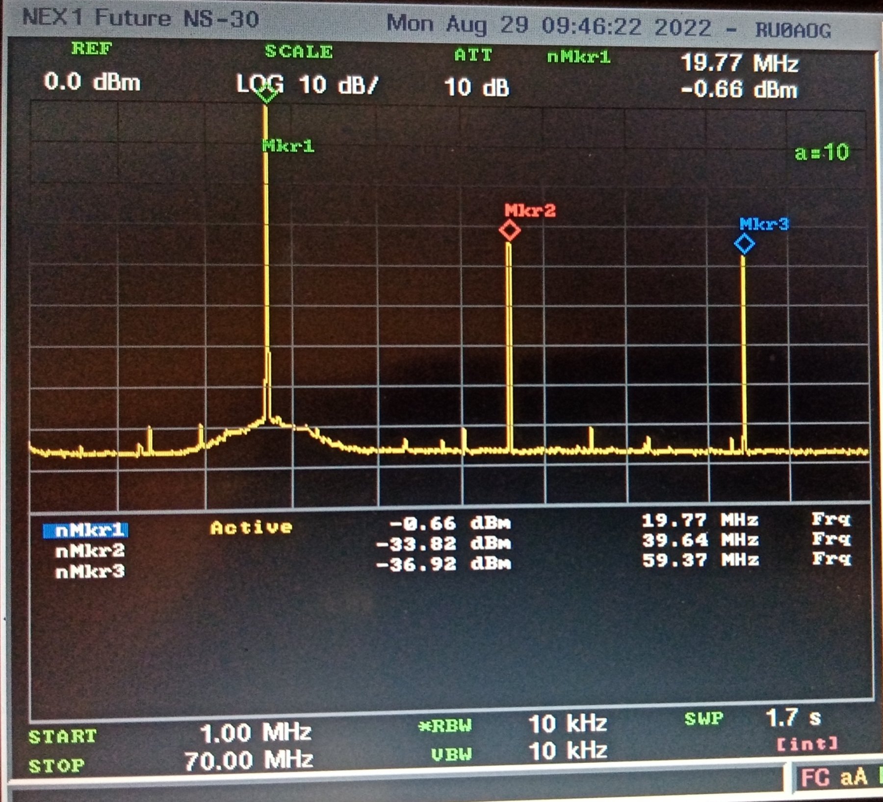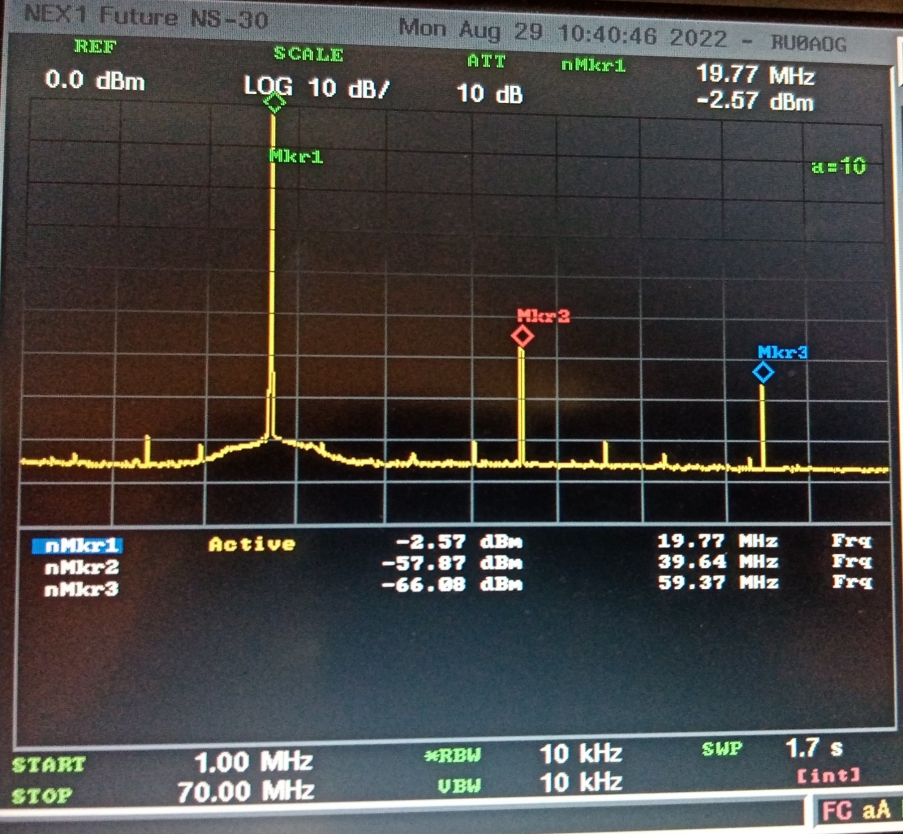 уже не так страшно. Ничего лишнего нет, одни гармоники. -34 dBm посмотрим поближе ещё ближе.