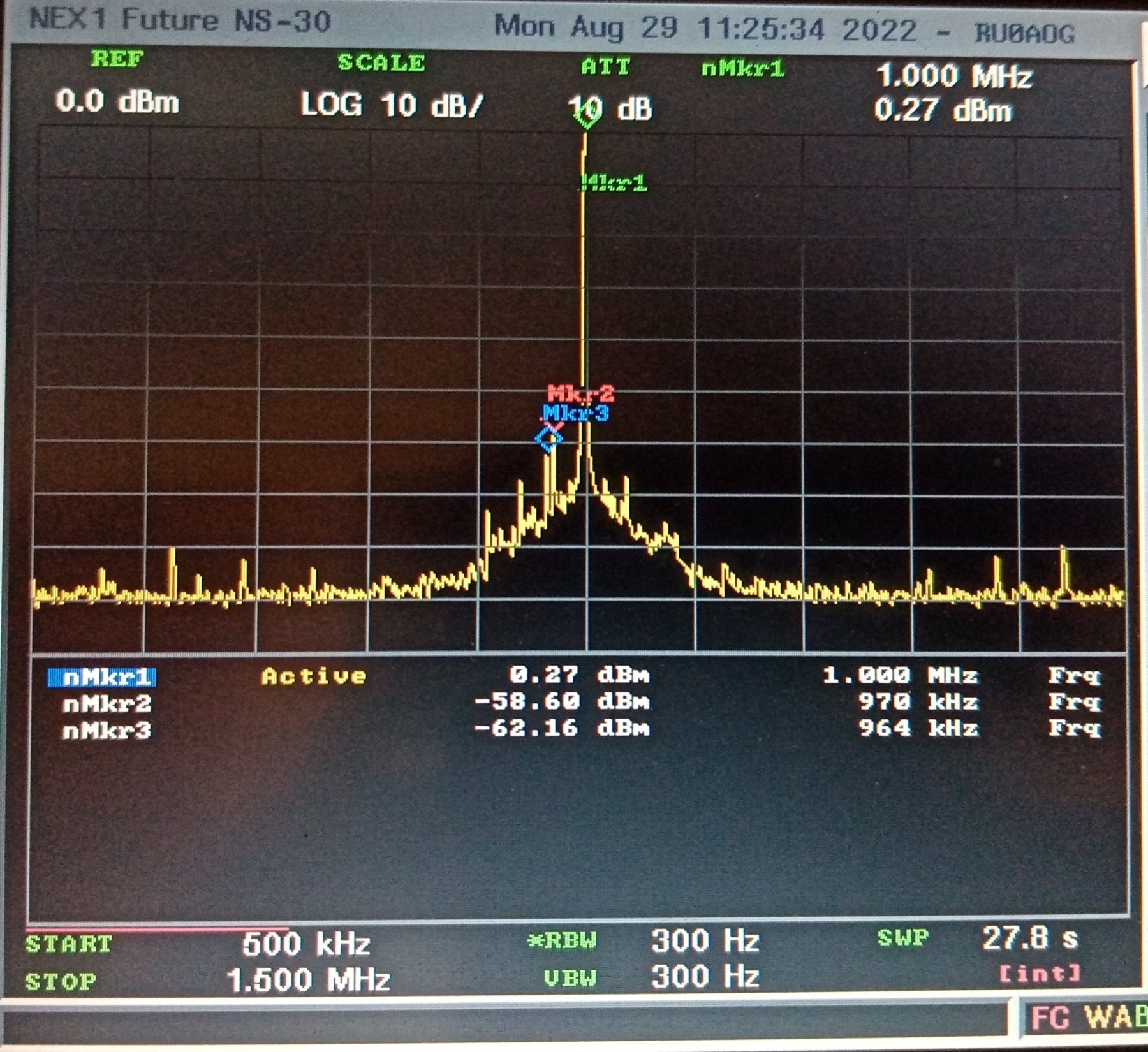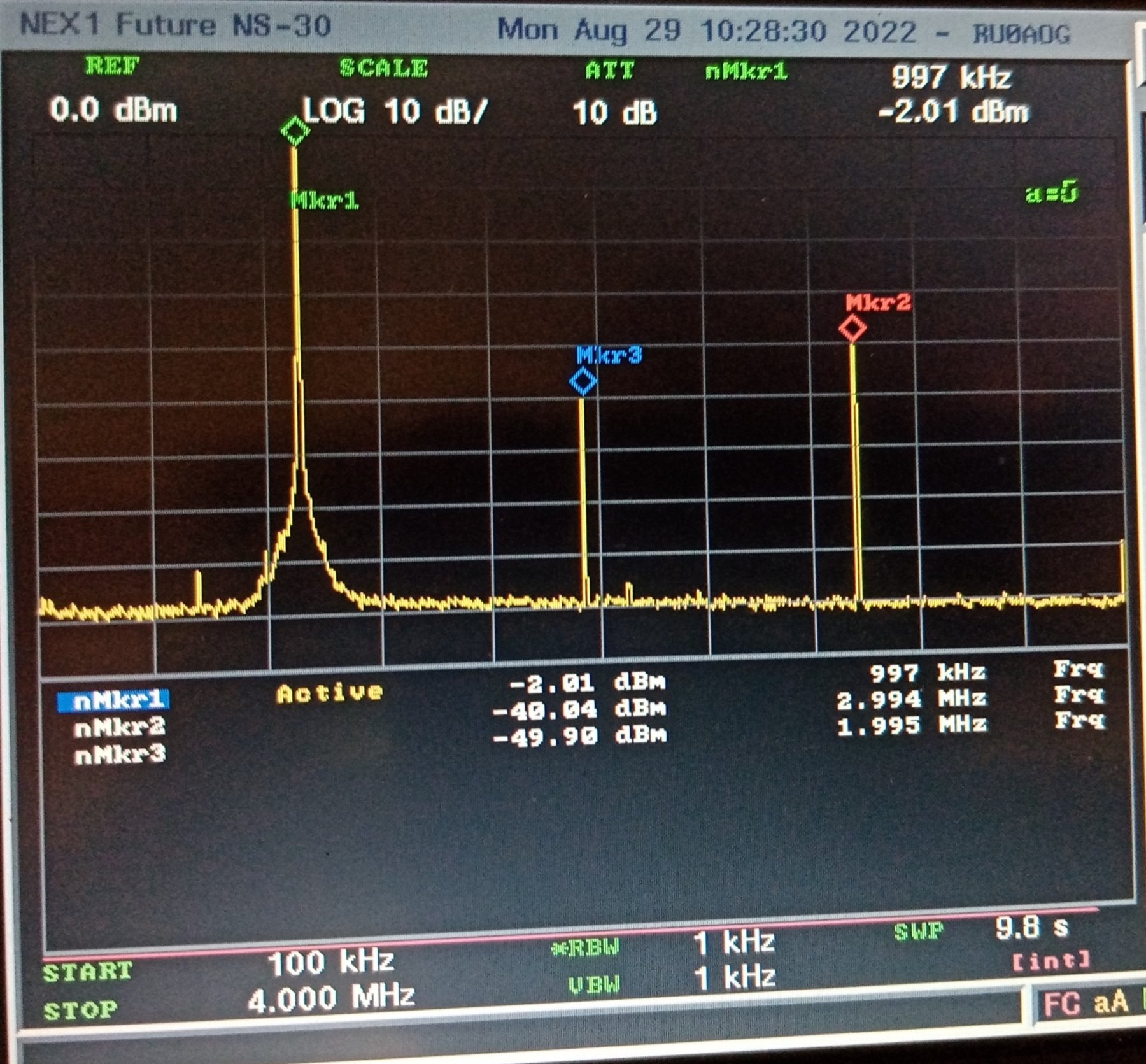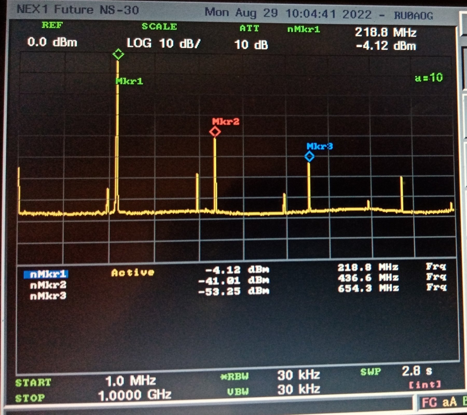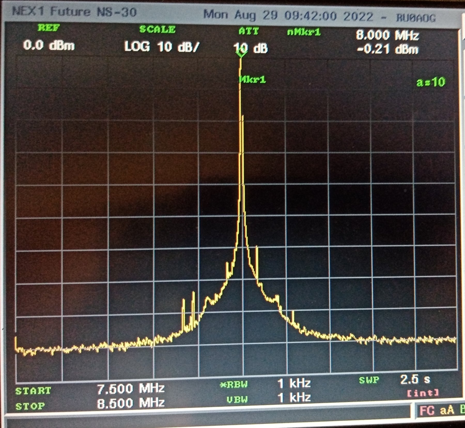 уже не так страшно. Ничего лишнего нет, одни гармоники. -34 dBm посмотрим поближе ещё ближе.