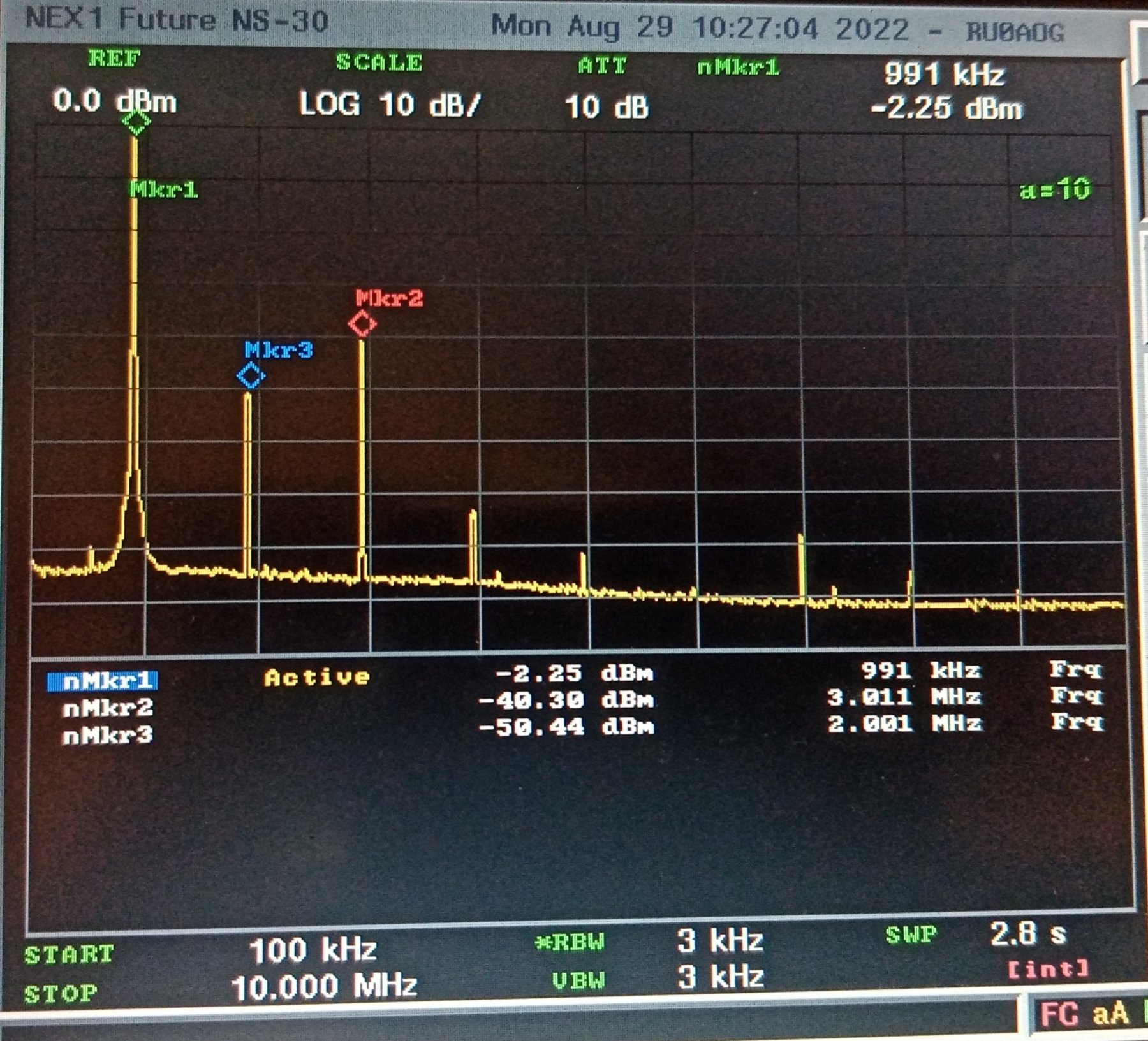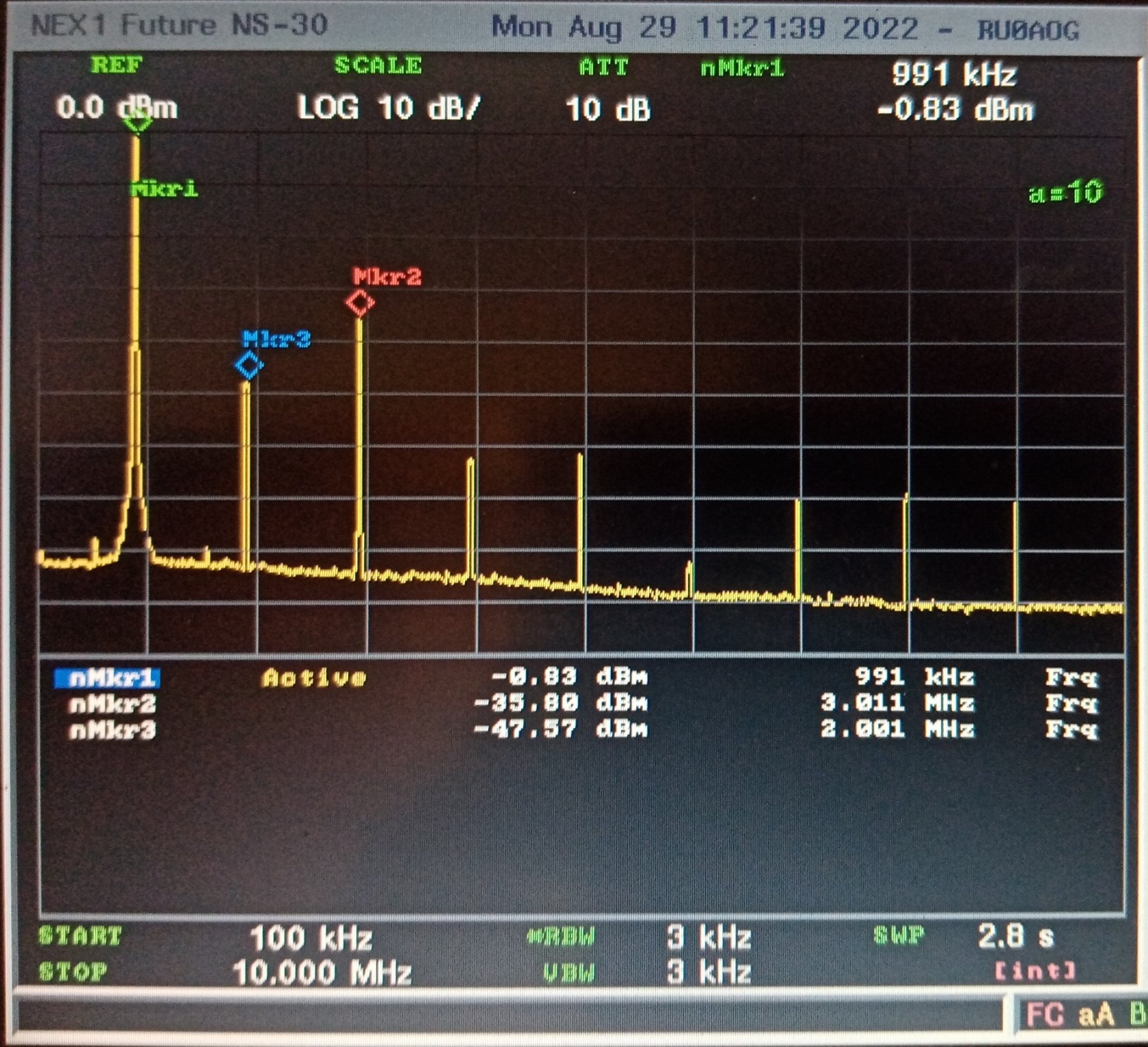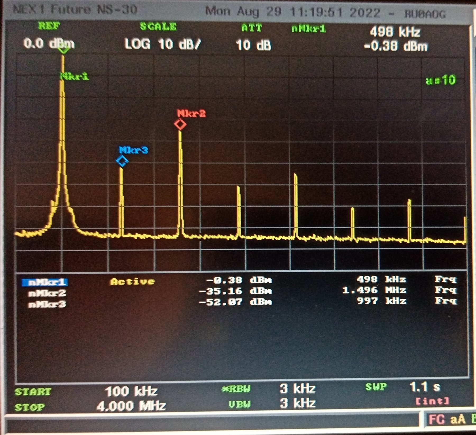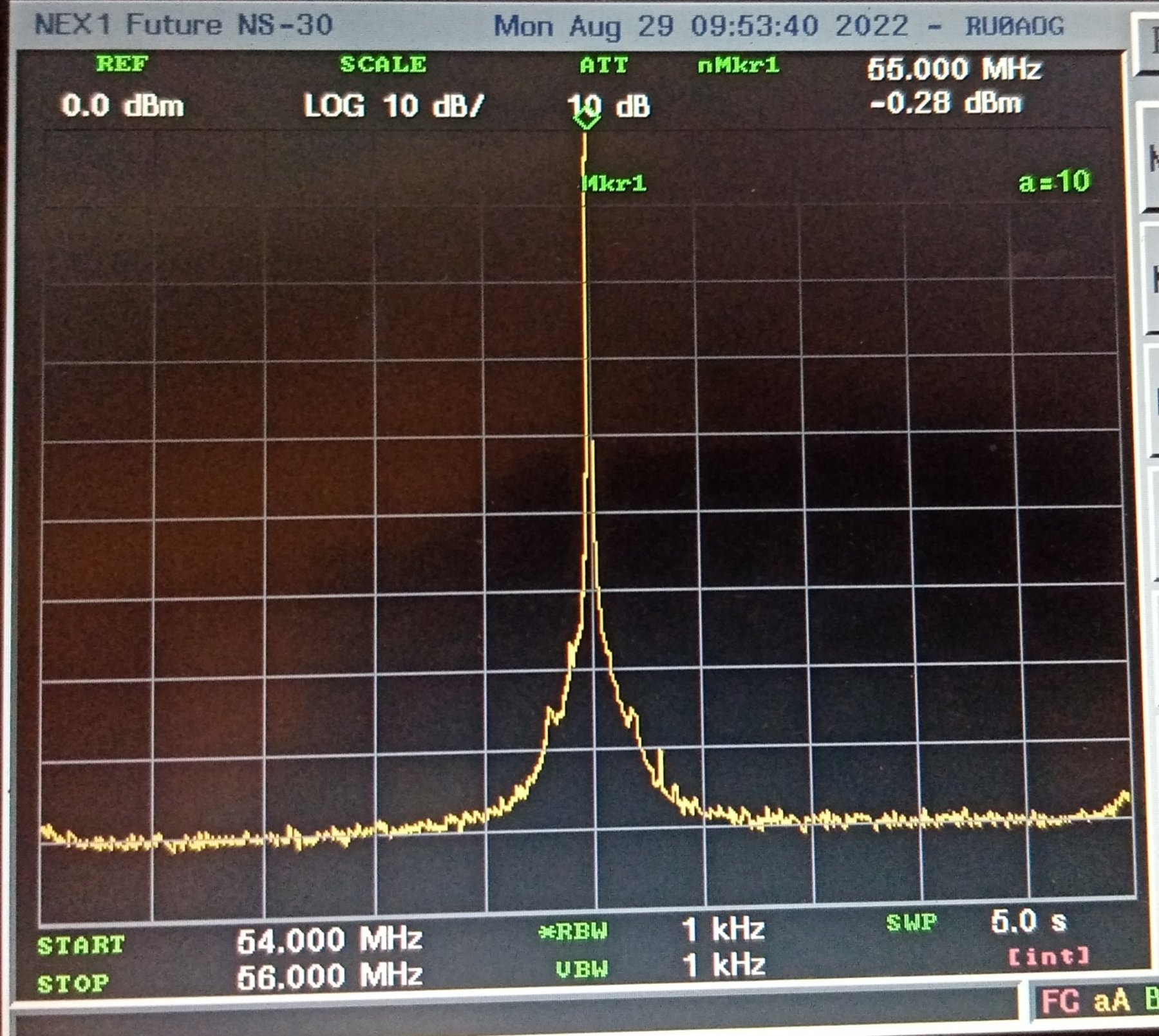 гармоники и спуры -50 dBm Довольно чистый сигнал.