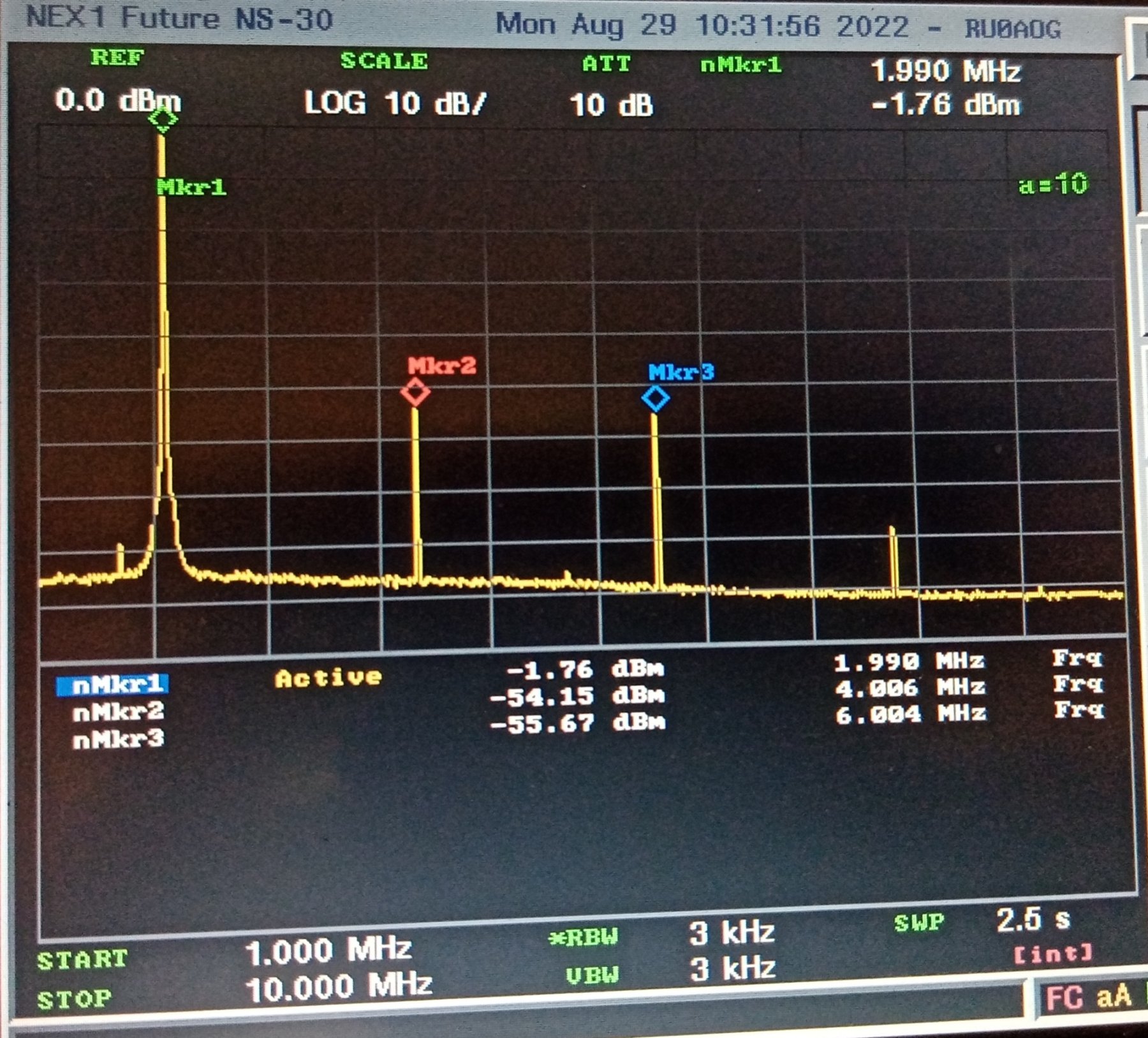 2 МГц -41 dBc 4 МГц -38 dBc 8 МГц Бегают какие-то негармонические палочки рядом с тоном (-41 dBc) и основной тон не такой чистый, как хотелось бы (-60 dBc)