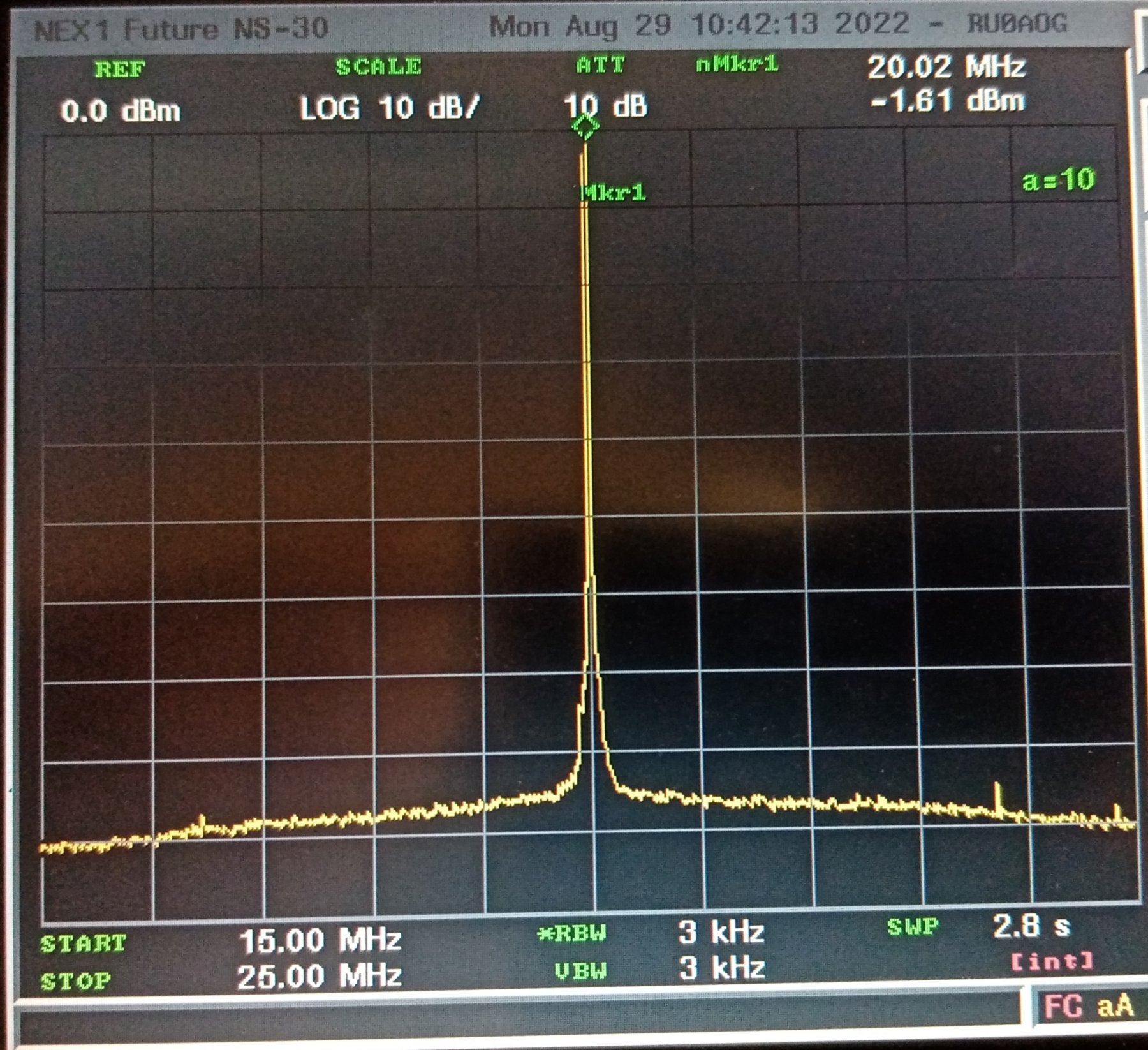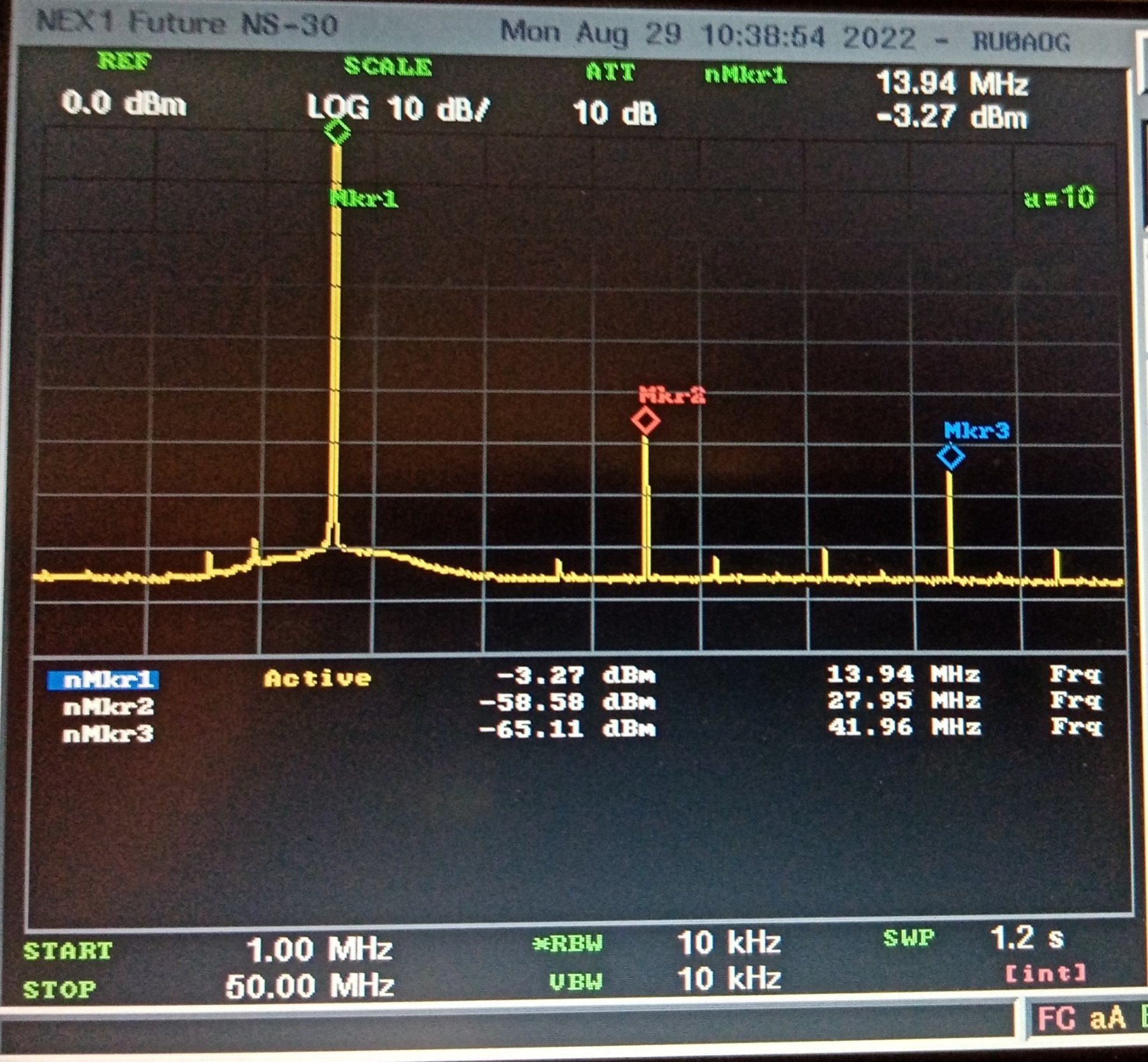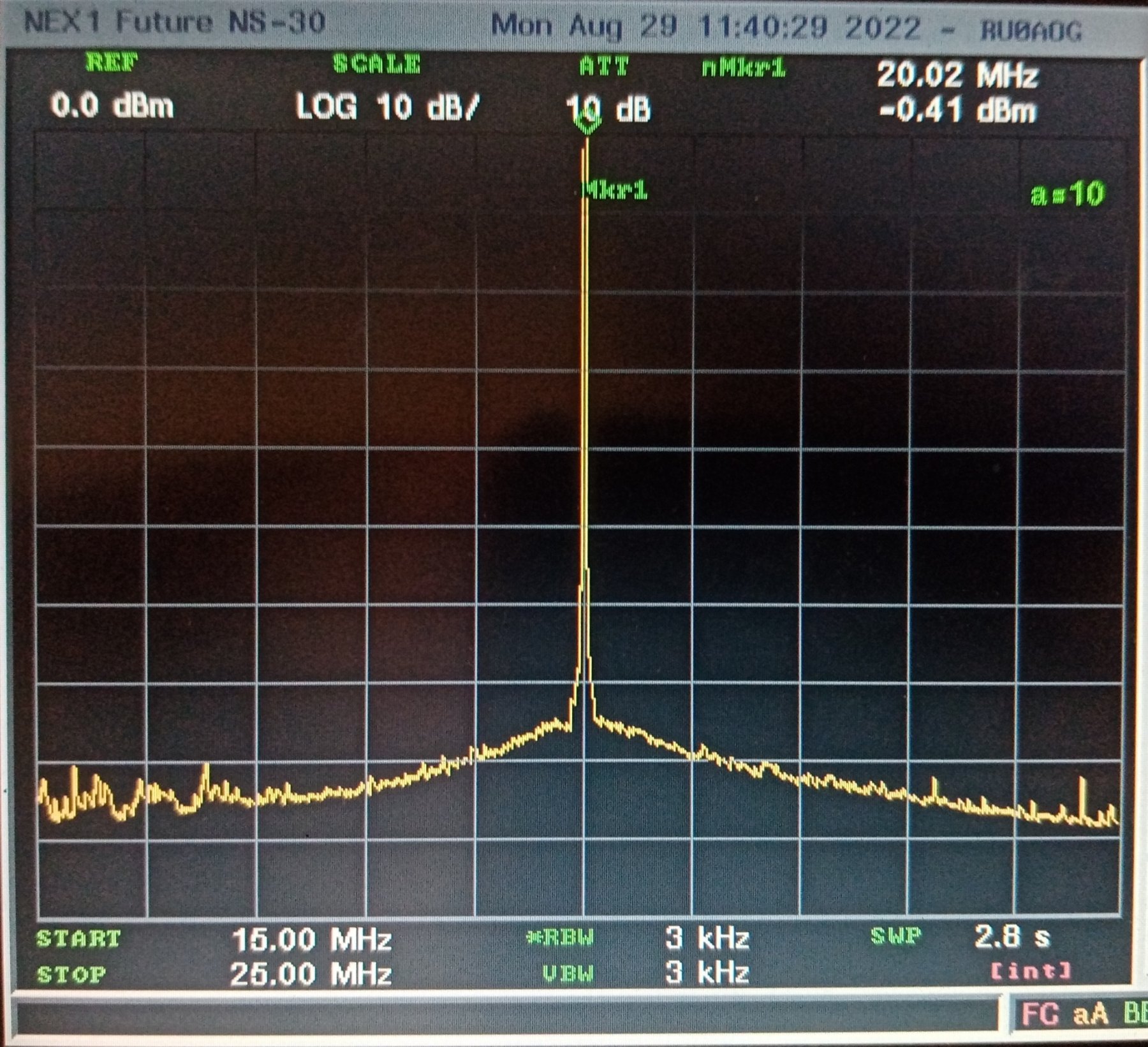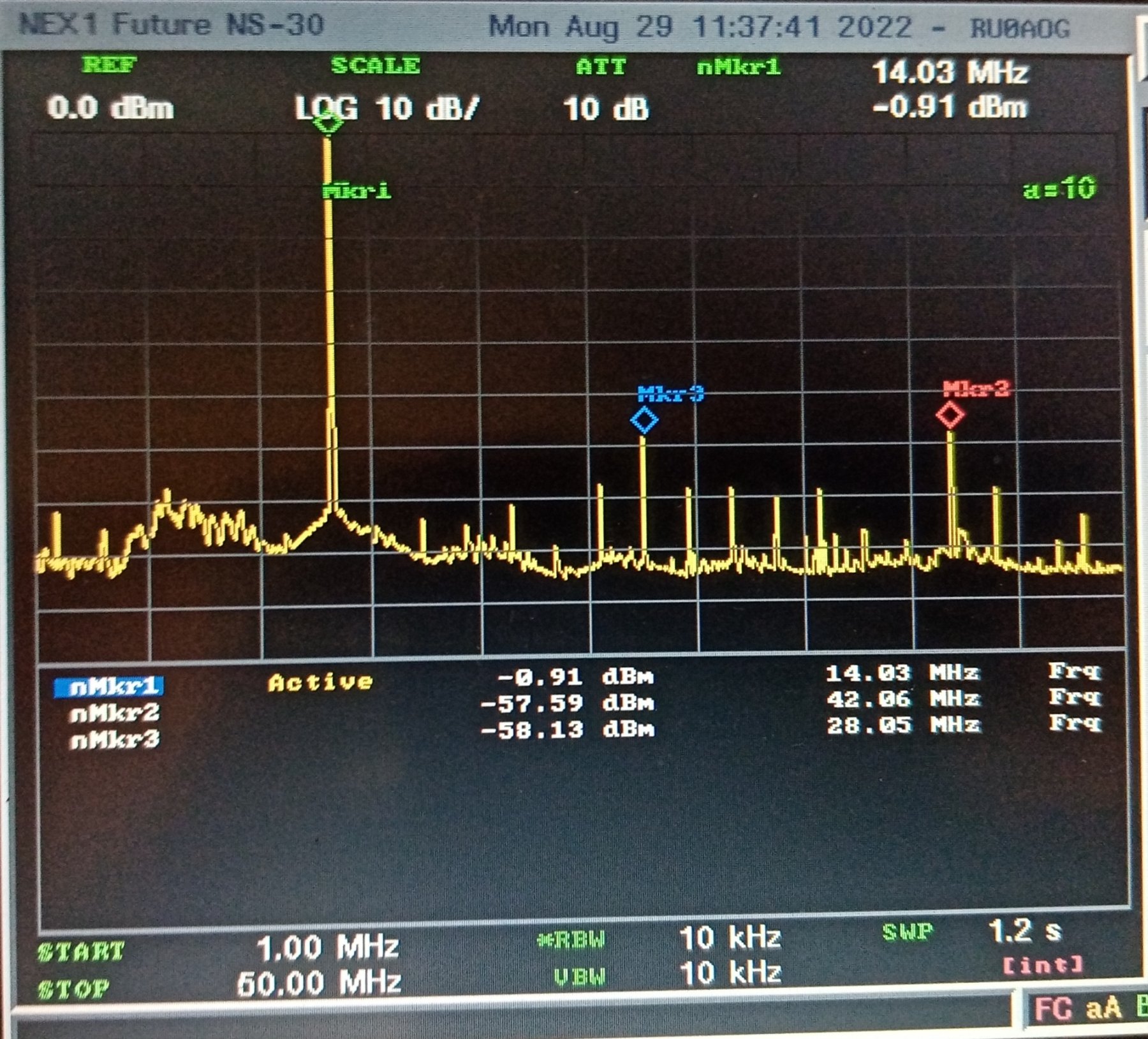 14 МГц -32 dBc 20 МГц -33 dBc но тут уже ситуация получше. Заметных негармонических палок нет