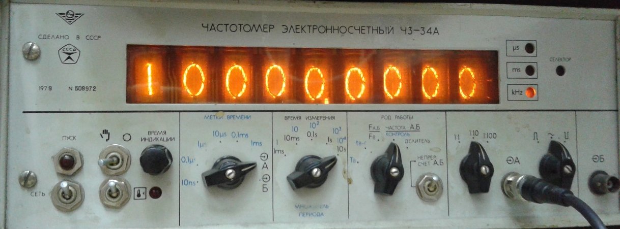 1. Включаем частотомер и NWT. Выход RF OUT соединяем с измерительным входом частотомера.