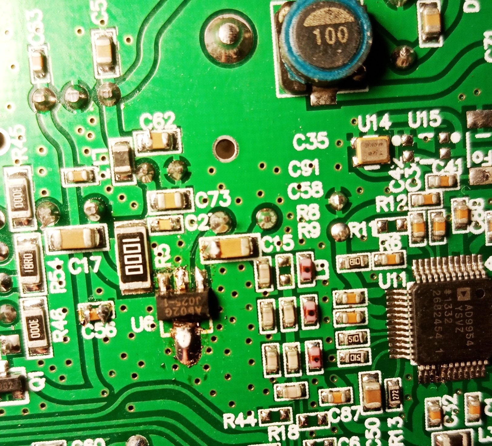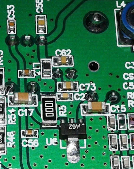 Более продвинутые пользователи NWT-шек ставят на выходе AD8009.При эксплуатации измерителя пропадает сигнал на выходе прибора. Детальный осмотр показал что выходит из строя ВЧ усилитель с маркировкой A62. Поиск устранения данной неисправности в интернете не принёс желанного результата, то есть - уменьшение напряжения питания вплоть до 8 вольт (с 12 -ти), замена ВЧ усилителя с подобными характеристиками (как более мощного, так и менее мощного), установка электролитов на более высокое напряжение, и так далее. Казалось бы что применённый ВЧ усилитель ничего сложного из себя не представляет (это обычные составные транзисторы), и наверное по этому было вынесено решение - вся проблема в чувствительности к статическому напряжению. И получилось что причина выяснена а проблема осталась.