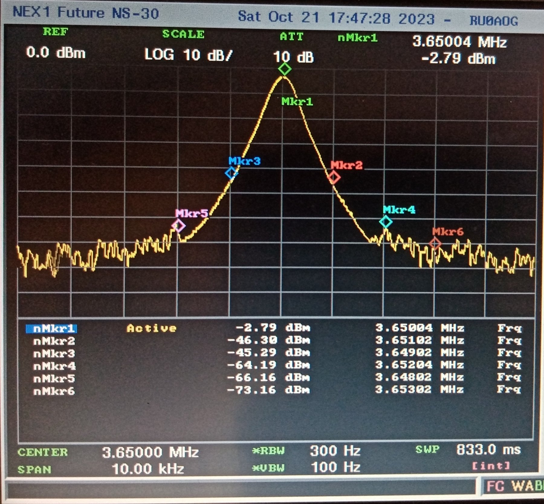 Мощность +45,6 dBm = 36 Вт Размах 130 В .