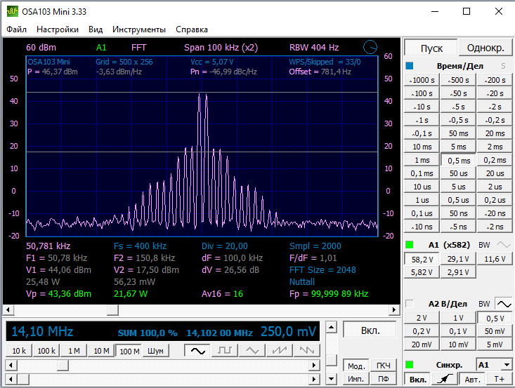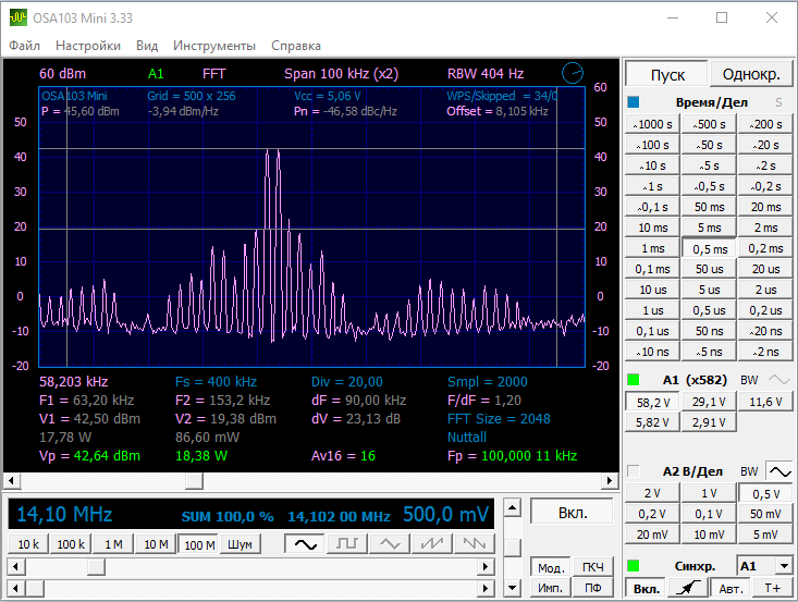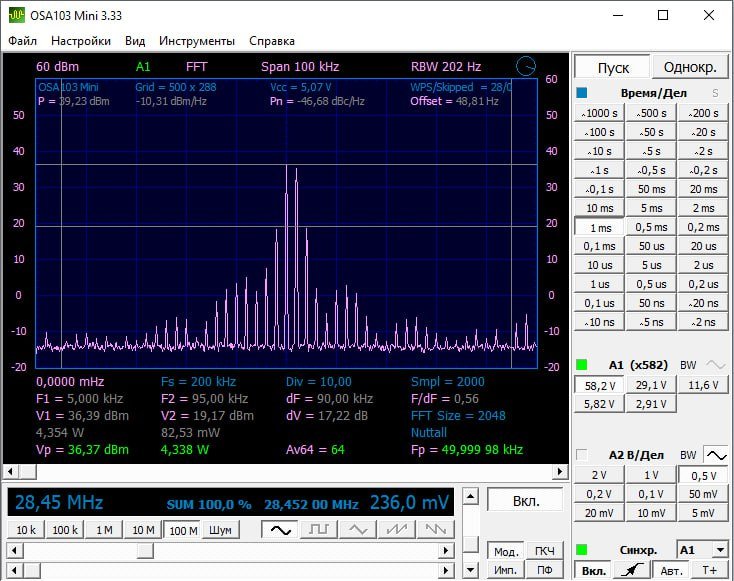 ИМД -24dB идет уже с каскада на BFR96 и его АЧХ полностью повторяет выход усилителя, как выровнять более ровнее пока не знаю, скорее всего в следующей версии платы вместо BFR96 будет какой нибудь операционник.