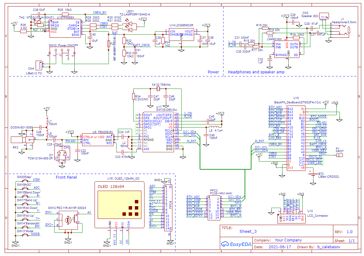 Плату пока не разводил, но проблем с этим не вижу. Пока хочу обсудить с уважаемыми участниками форума схему. Как видится, следует "прокачать" антенную часть - может, добавить еще усилитель и фильтры? Ну и по усилителю для наушников/динамика хочется как-то более правильно организовать переключение.