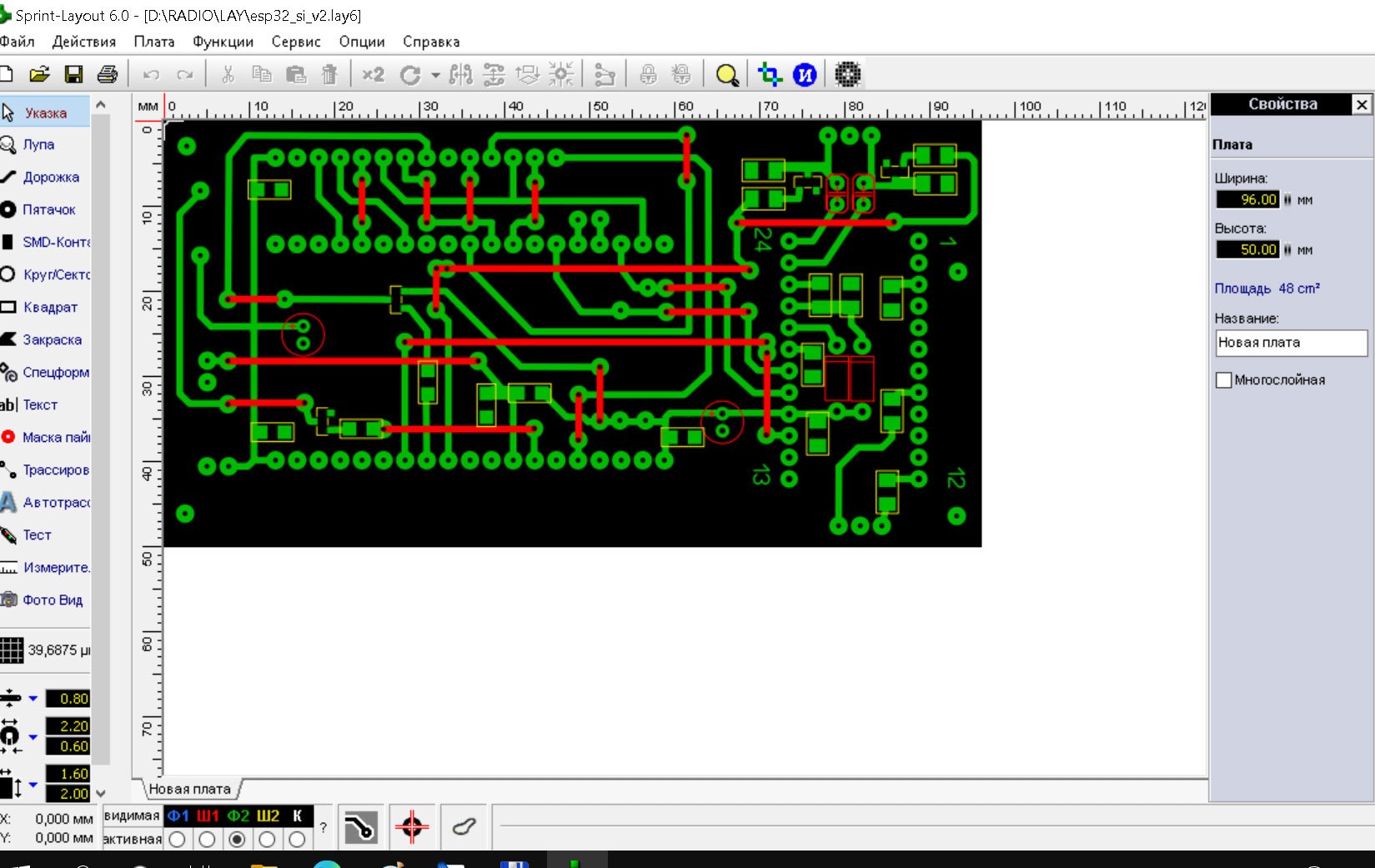 Нарисовал плату (как обычно без общей шины под ЧПУ): После того как спаял выяснилось, что энкодер подключил вместо RX2 и TX2, к TX и RX.