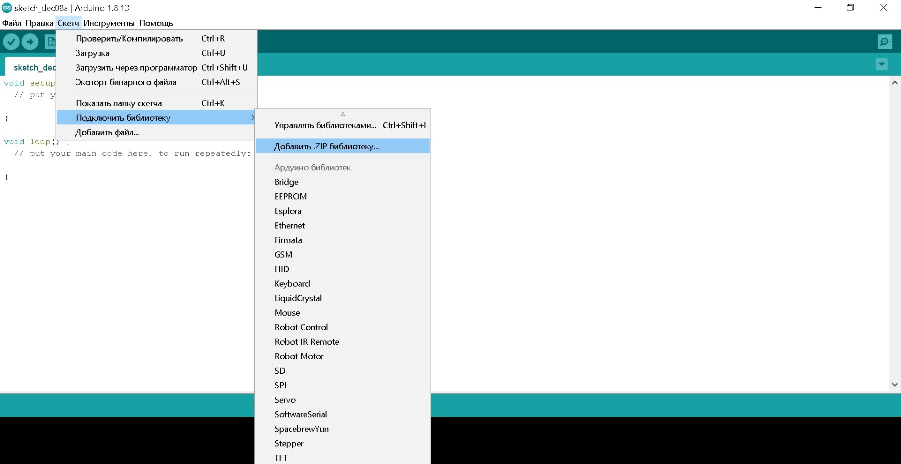 Я использовал версию ide 1.8.13. Необходимые библиотеки: