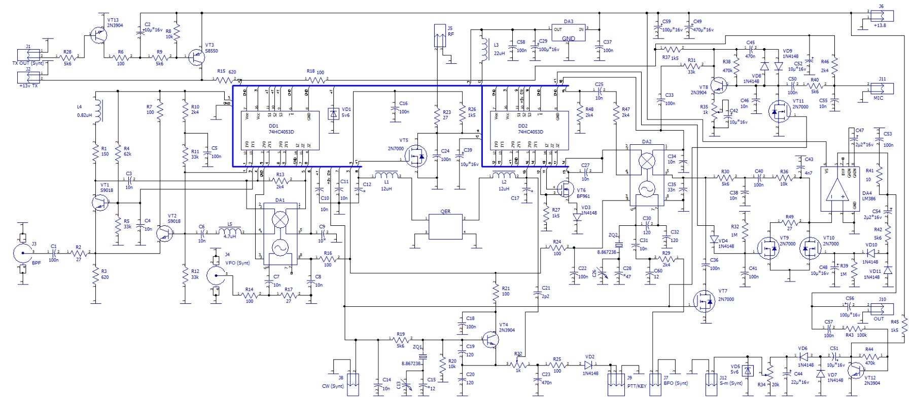 Вот мой, пока черновой вариант, тут кроме НЧ и CW узлов, компоненты расставляю руками, а трассировку уже DipTrace делает