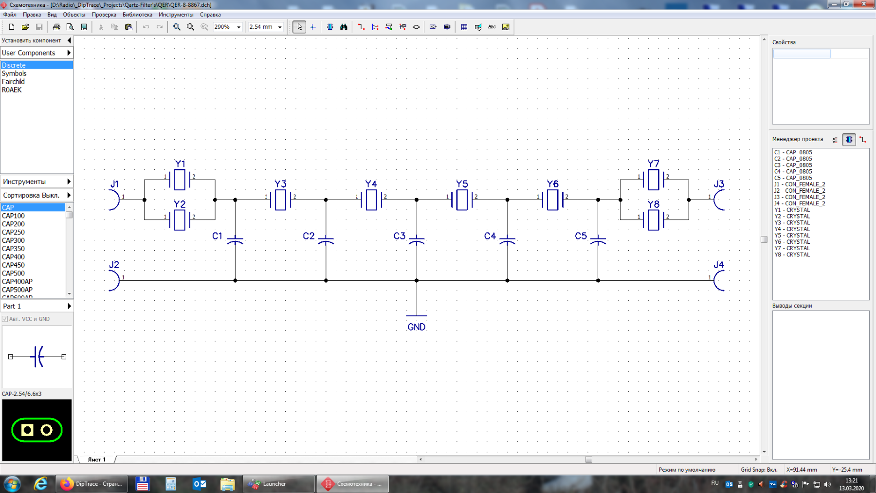 Создал проект КФ, сделал расстановку компонентов и трассировку