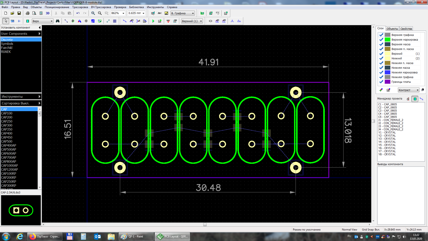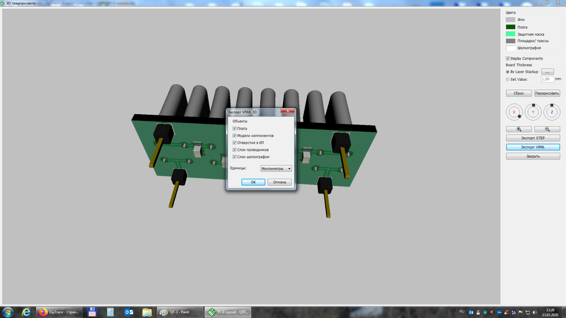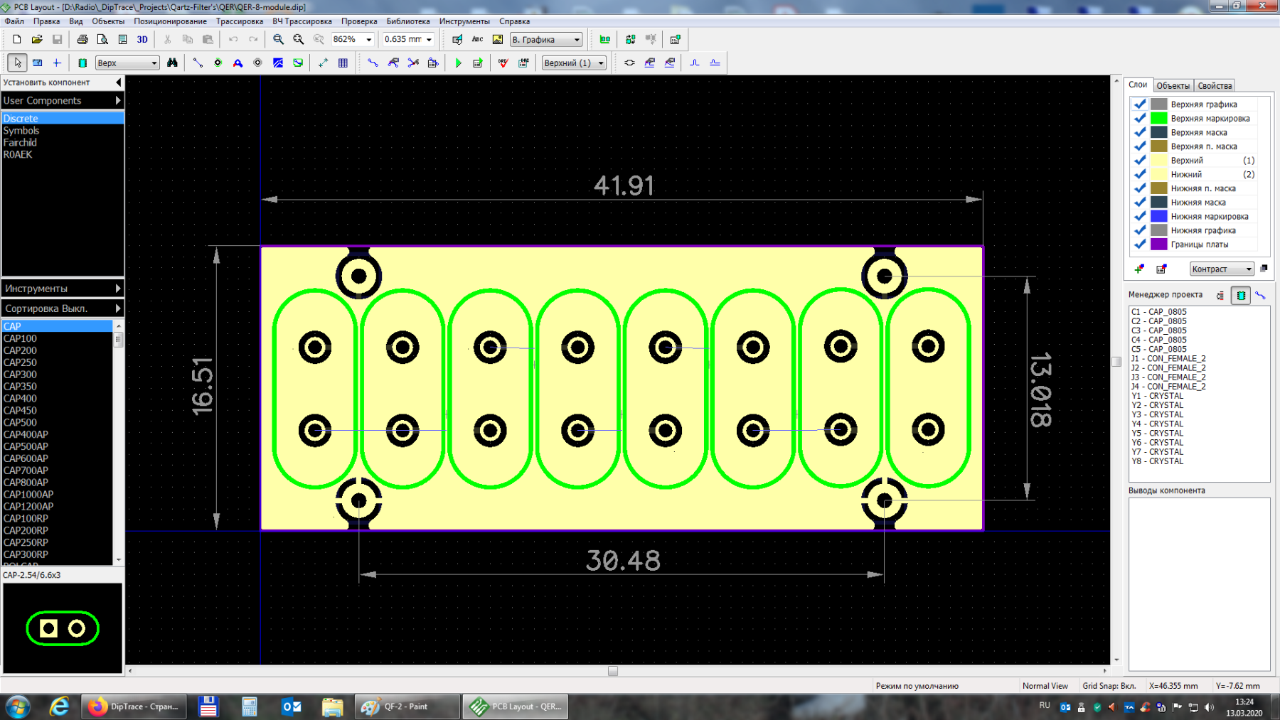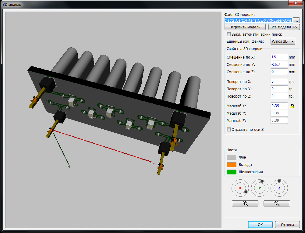 Вкратце опишу как получилось из платки кварцевого фильтра сделать отдельный компонент в 3D средствами DipTrace.