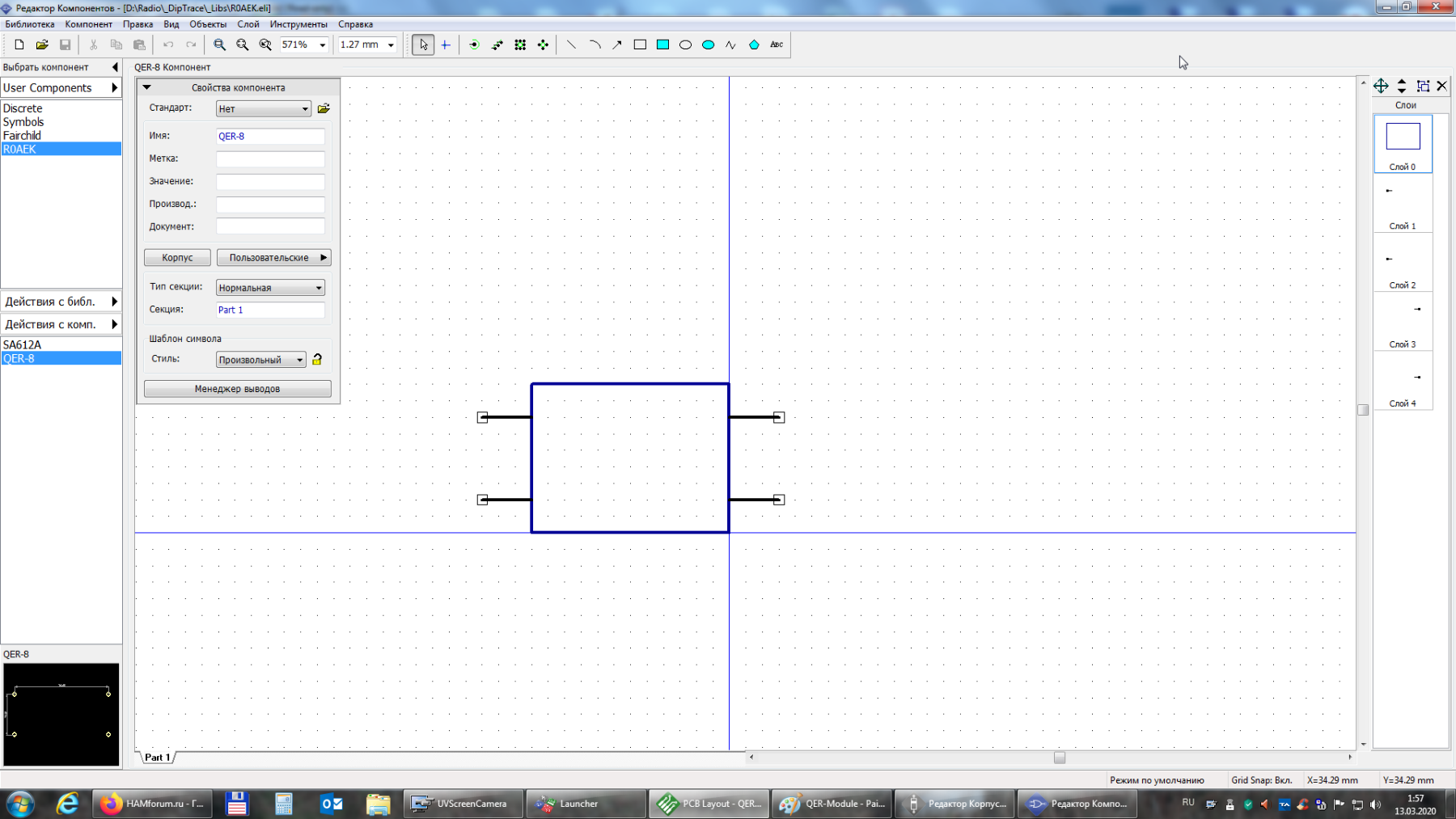 Добавил на посадочное место 3D модель платки КФ из VRML файлика, подобрав масштаб и координаты размещения 3D модели Потом добавил новый компонент в схему и обновил проект печатки по компонентам, результат постом выше описан.