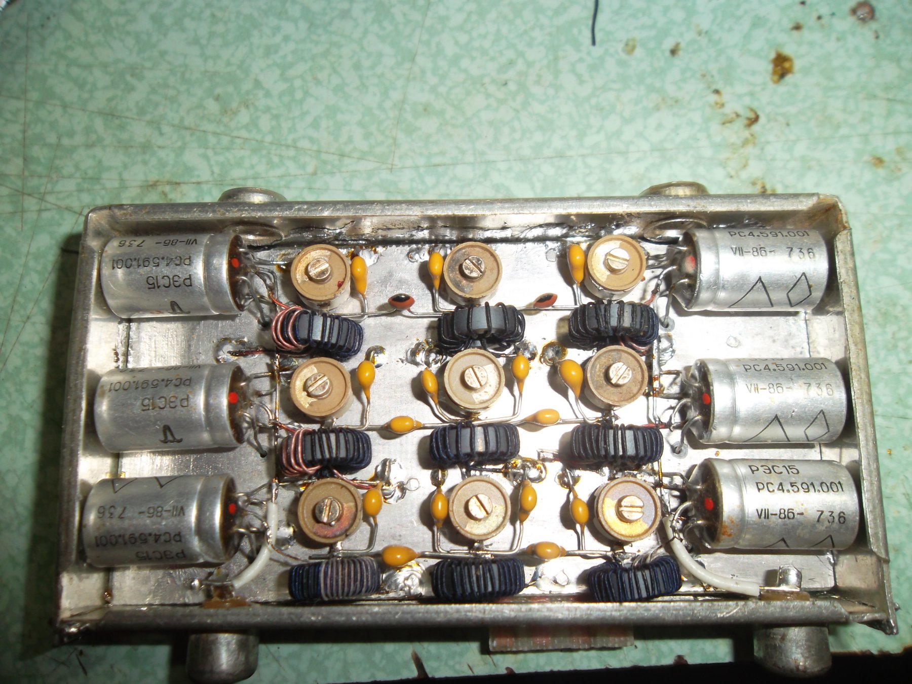 Уменьшить ширину полосы без изменения номиналов конденсаторов, только подстраивая сердечники оказалось невозможным.