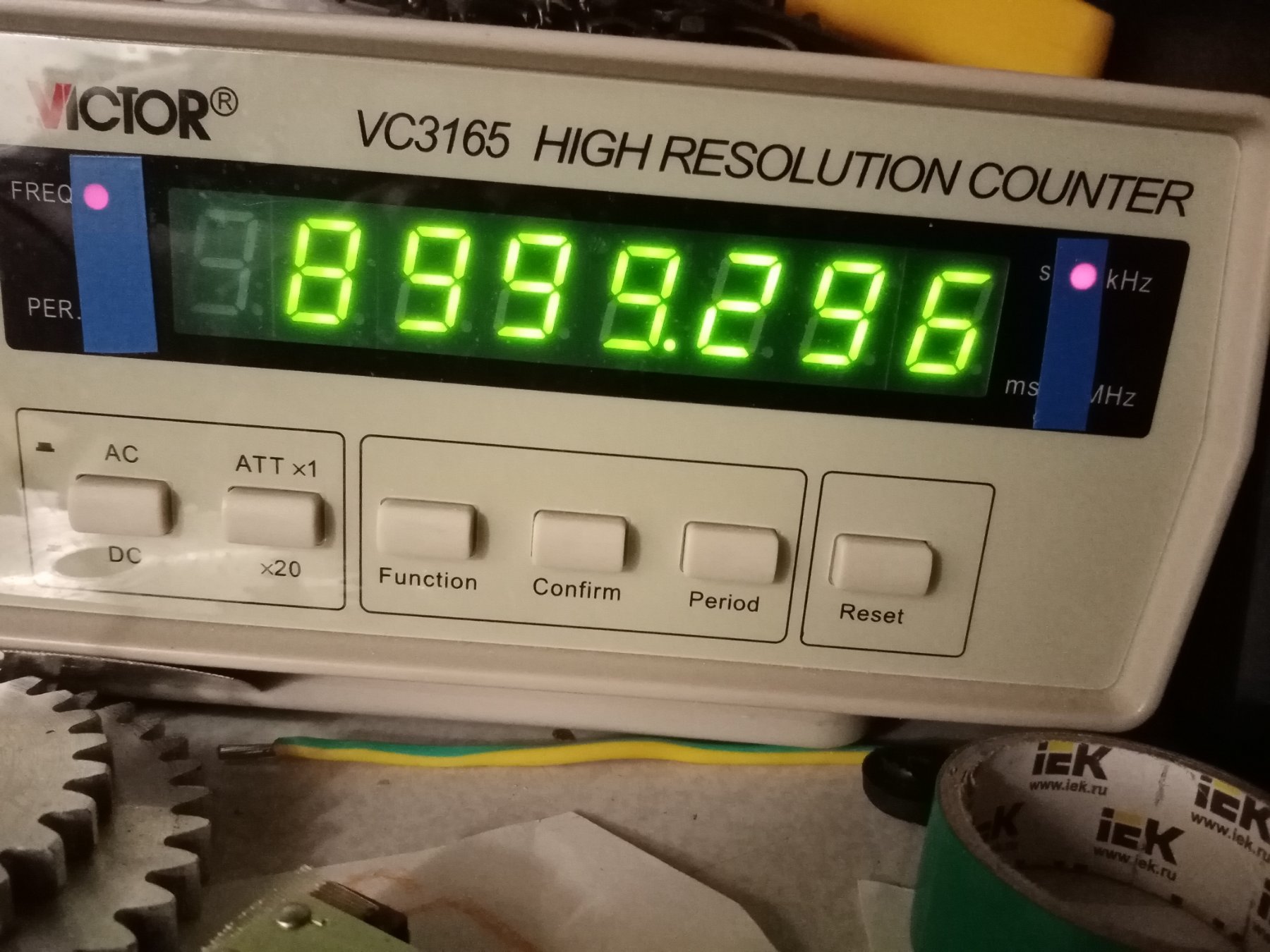 Второй каскад убирать я не стал, и так всё на соплях. Но частота держится. Мерил с точностью до герца. Можно было бы и до 0,1 Гц померить, но ждать в 10 раз дольше. Не хочу. Обмерил 30 кварцев и уже запарился.