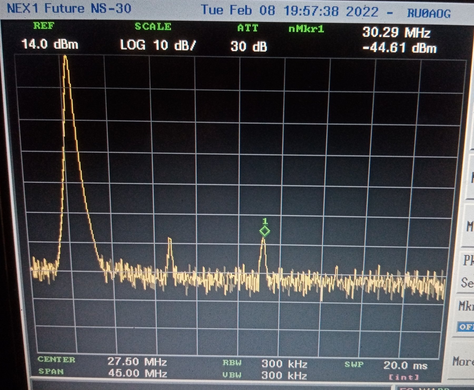 Уровень на выходе +13 dBm (1В х 50 Ом).