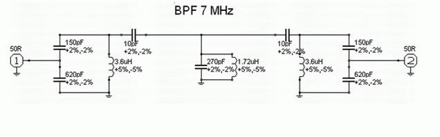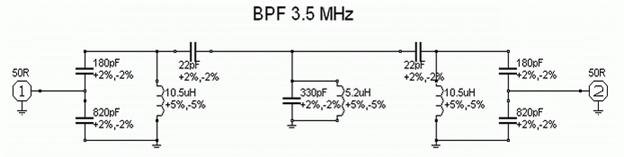 Оригинал статьи тут: "запрещено правилами форума" именно отсюда я скопировал схему пдф, написано "Полосовые диапазонные фильтры высококачественного трансивера." И не так давно Владимир R2AJI выпустил видео про подобный полосовик , покрайней мере номиналы элементов такие же. Ранее я делал полосовики у меня затухание было 0.2дб, а тут ни как не могу понять что я делаю не так. Я так понял фильтр имеет 3 контура с различной добротностью крайние имеют высокую, а средний низкую добротность.
